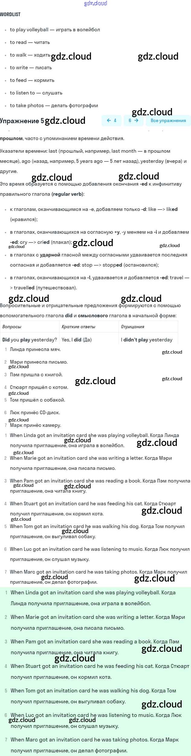 Lesson 2. What were you doing the whole day yesterday? Ответы к Unit 6. We’ve had a nice trip to England по Английскому языку 5 класс Учебник Кузовлев УМК Просвещение