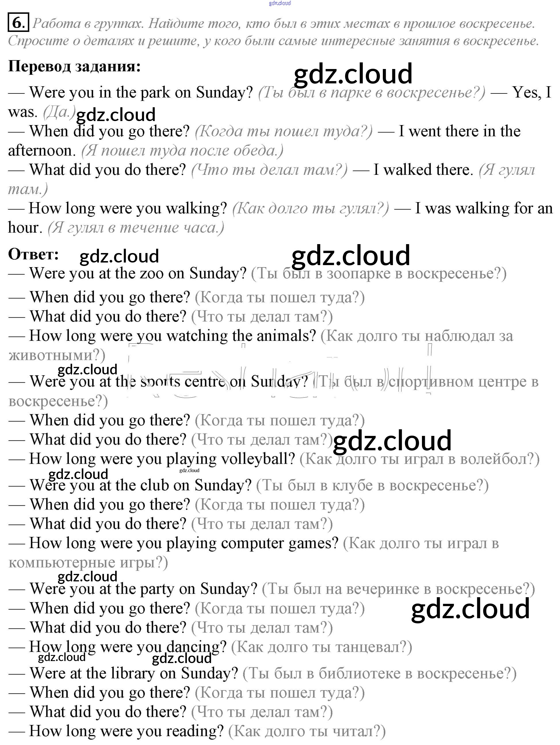 Lesson 2. What were you doing the whole day yesterday? Ответы к Unit 6. We’ve had a nice trip to England по Английскому языку 5 класс Учебник Кузовлев УМК Просвещение
