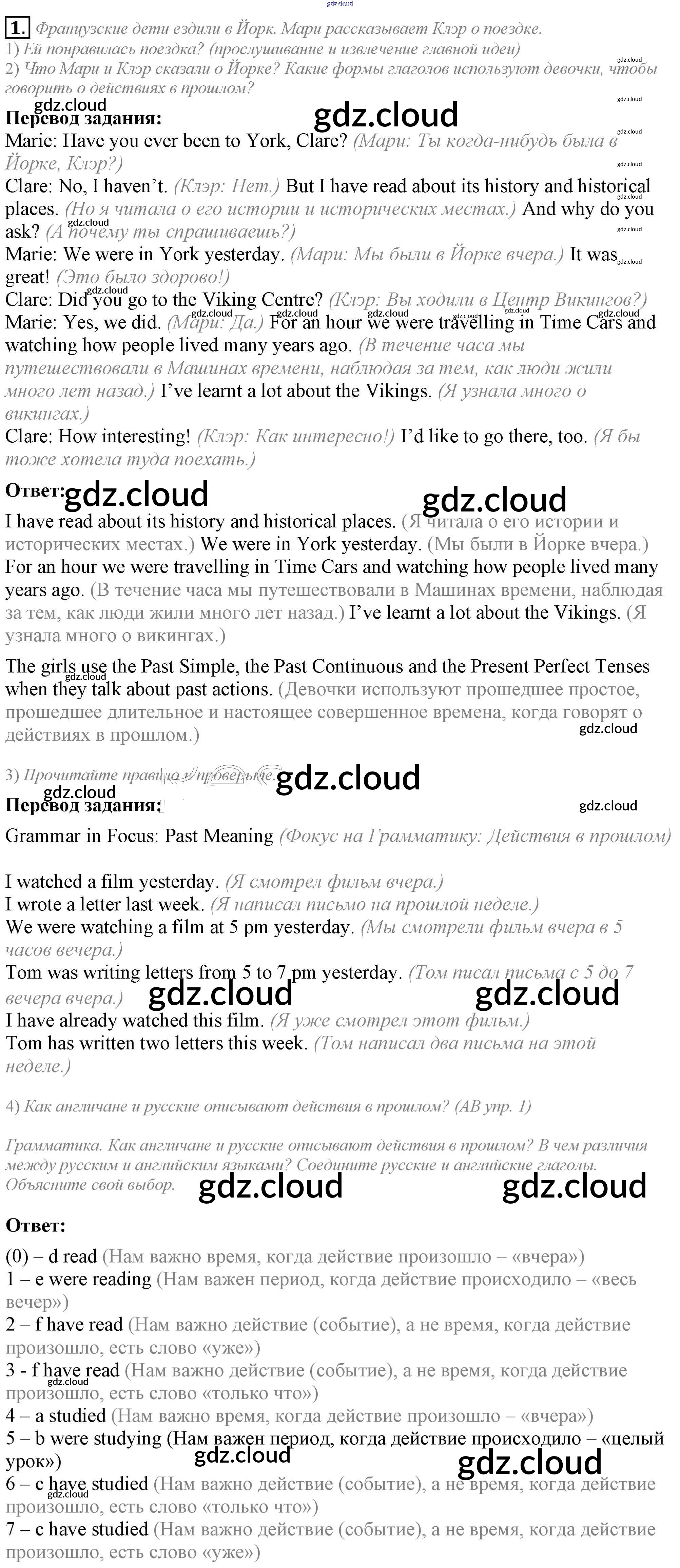 Ответ на задание 1 Учебник Английский язык за 5 (пятый) класс Кузовлев, Лапа, Костина, Дуванова, Кузнецова УМК 2015