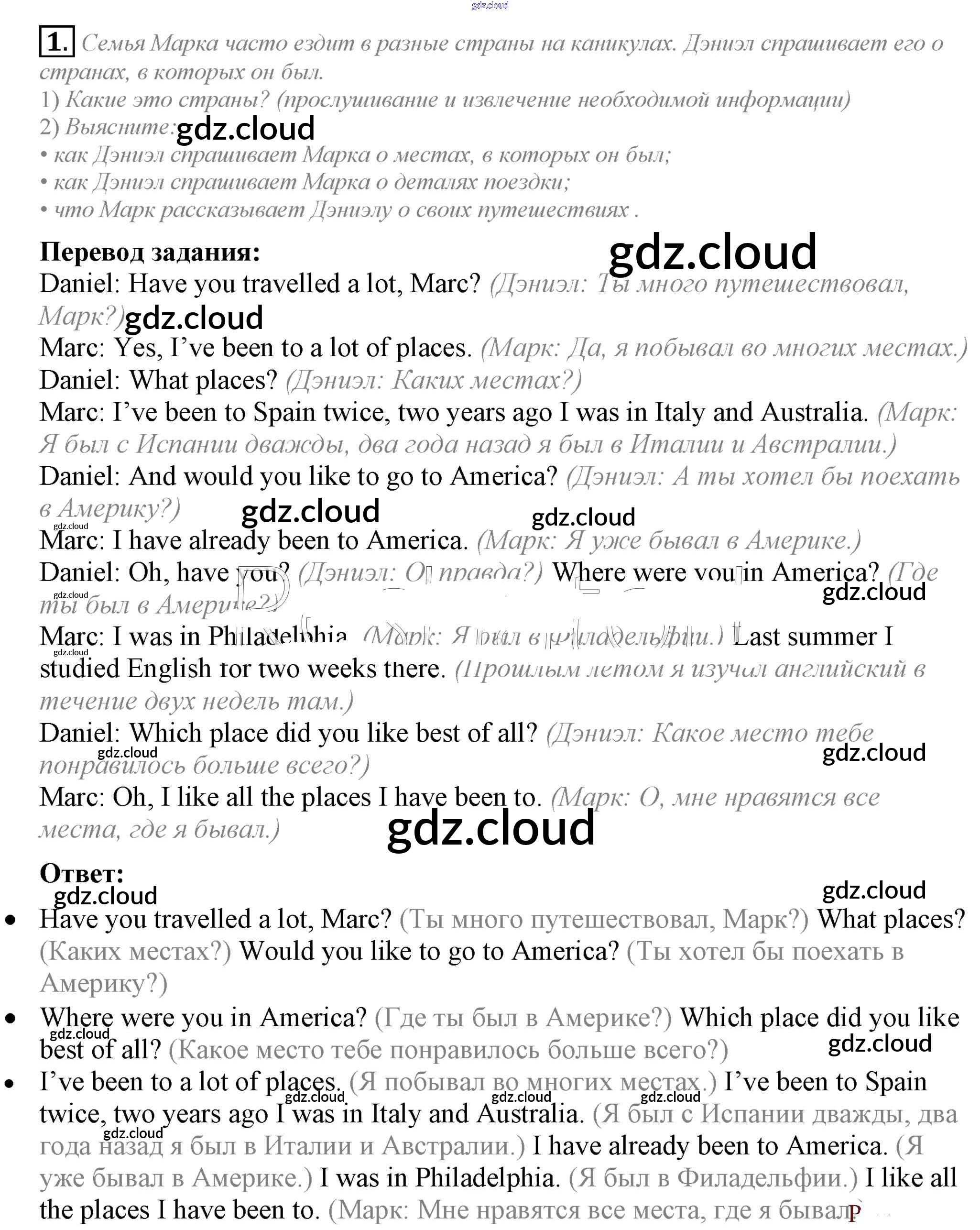 Ответ на задание 1 Учебник Английский язык за 5 (пятый) класс Кузовлев, Лапа, Костина, Дуванова, Кузнецова УМК 2015