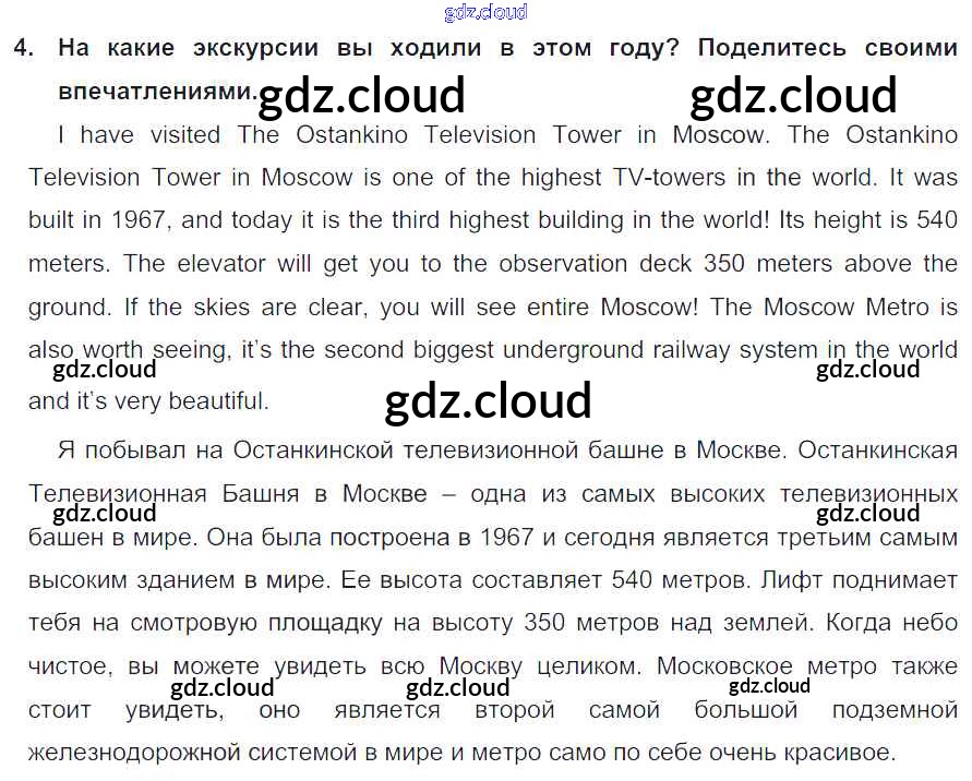 Ответ на задание 4 Учебник Английский язык за 5 (пятый) класс Кузовлев, Лапа, Костина, Дуванова, Кузнецова УМК 2015