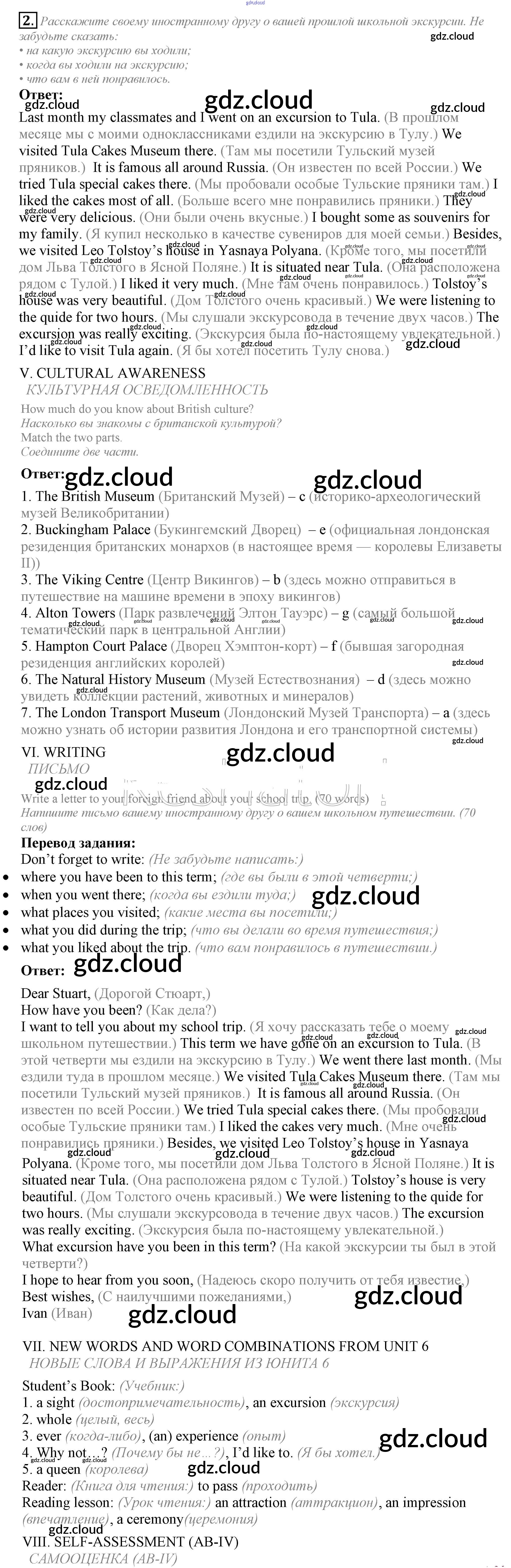 Lesson 7-8. Test yourself Ответы к Unit 6. We’ve had a nice trip to England по Английскому языку 5 класс Учебник Кузовлев УМК Просвещение