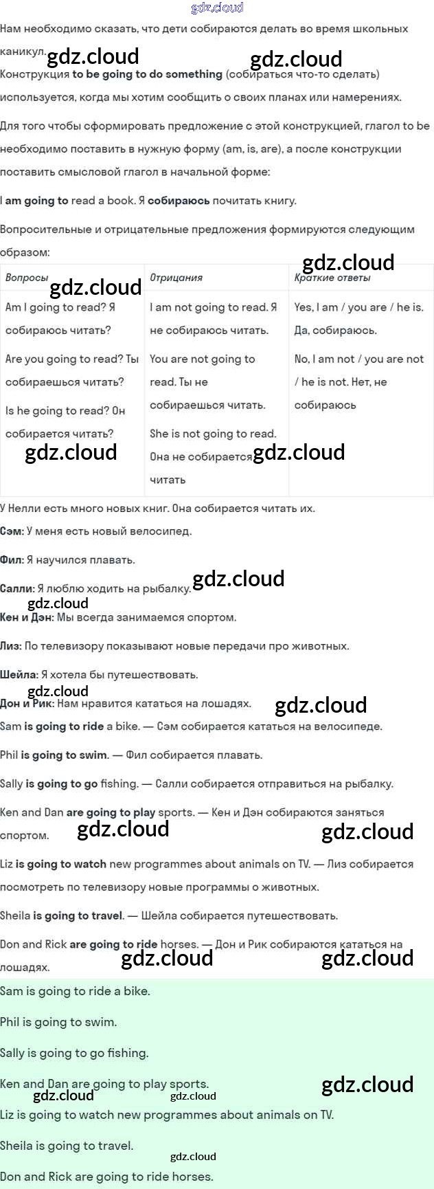 Lesson 2. What are you going to do? Ответы к Unit 7. My future holiday по Английскому языку 5 класс Учебник Кузовлев УМК Просвещение