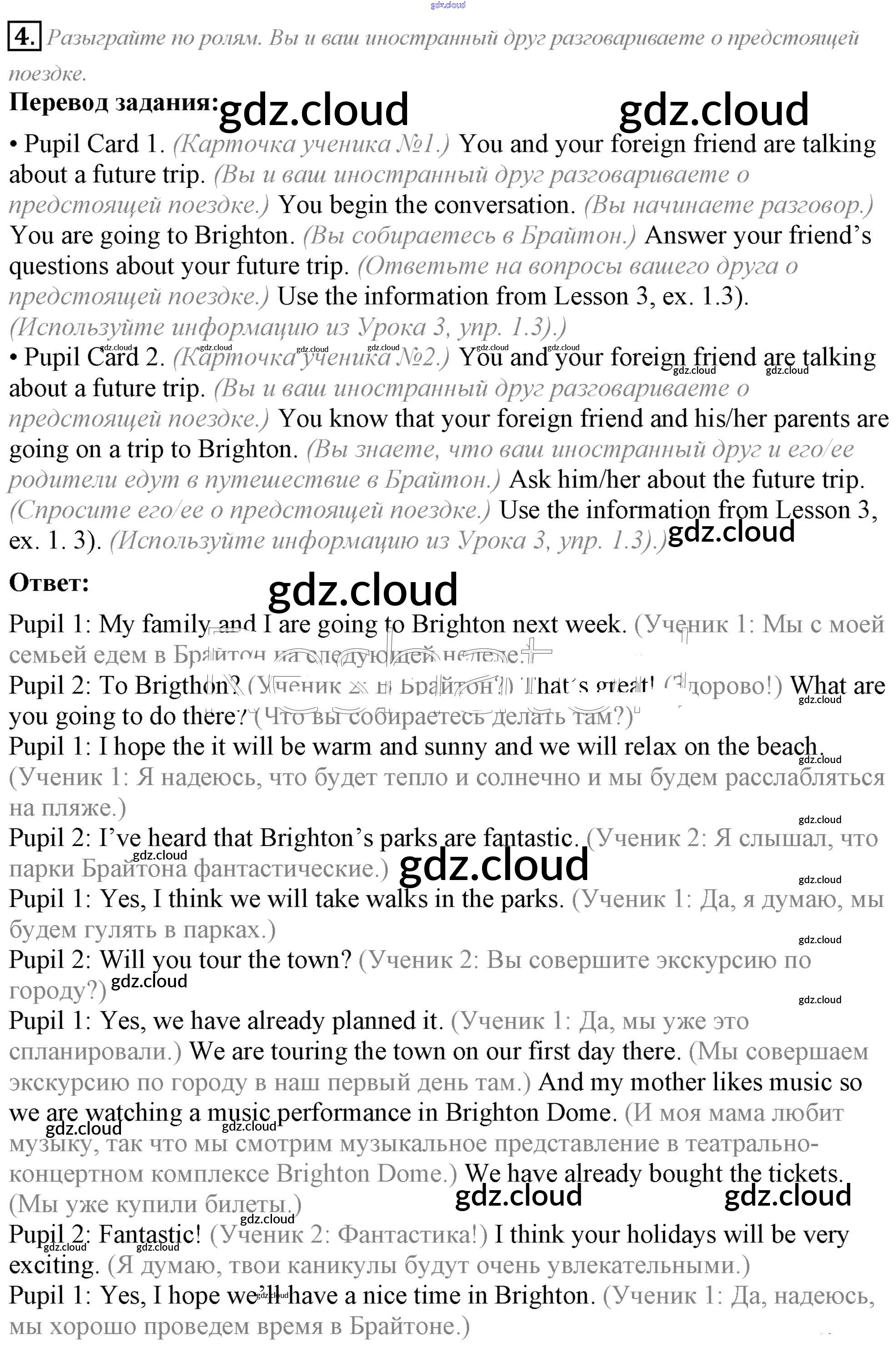 Ответ на задание 4 Учебник Английский язык за 5 (пятый) класс Кузовлев, Лапа, Костина, Дуванова, Кузнецова УМК 2015