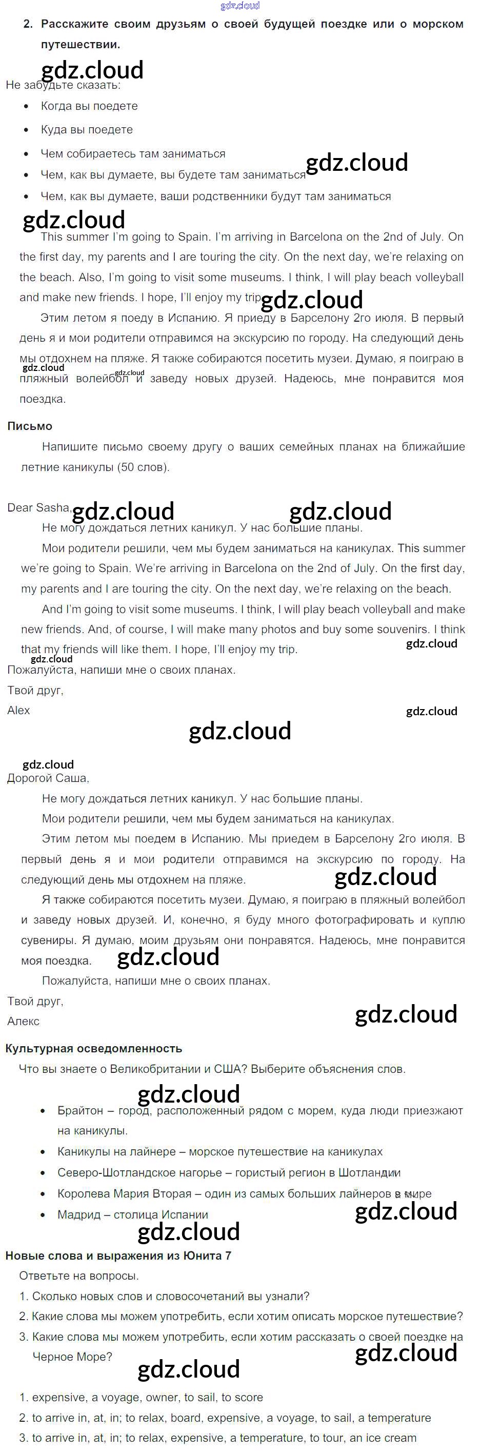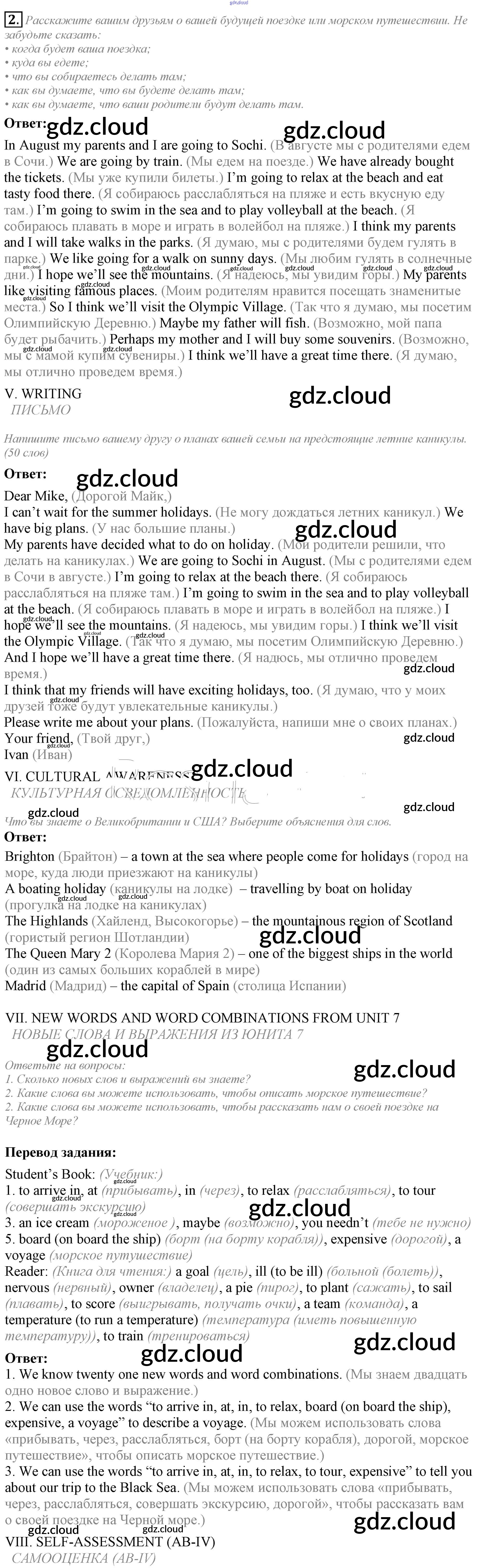 Lesson 7-8. Test yourself Ответы к Unit 7. My future holiday по Английскому языку 5 класс Учебник Кузовлев УМК Просвещение