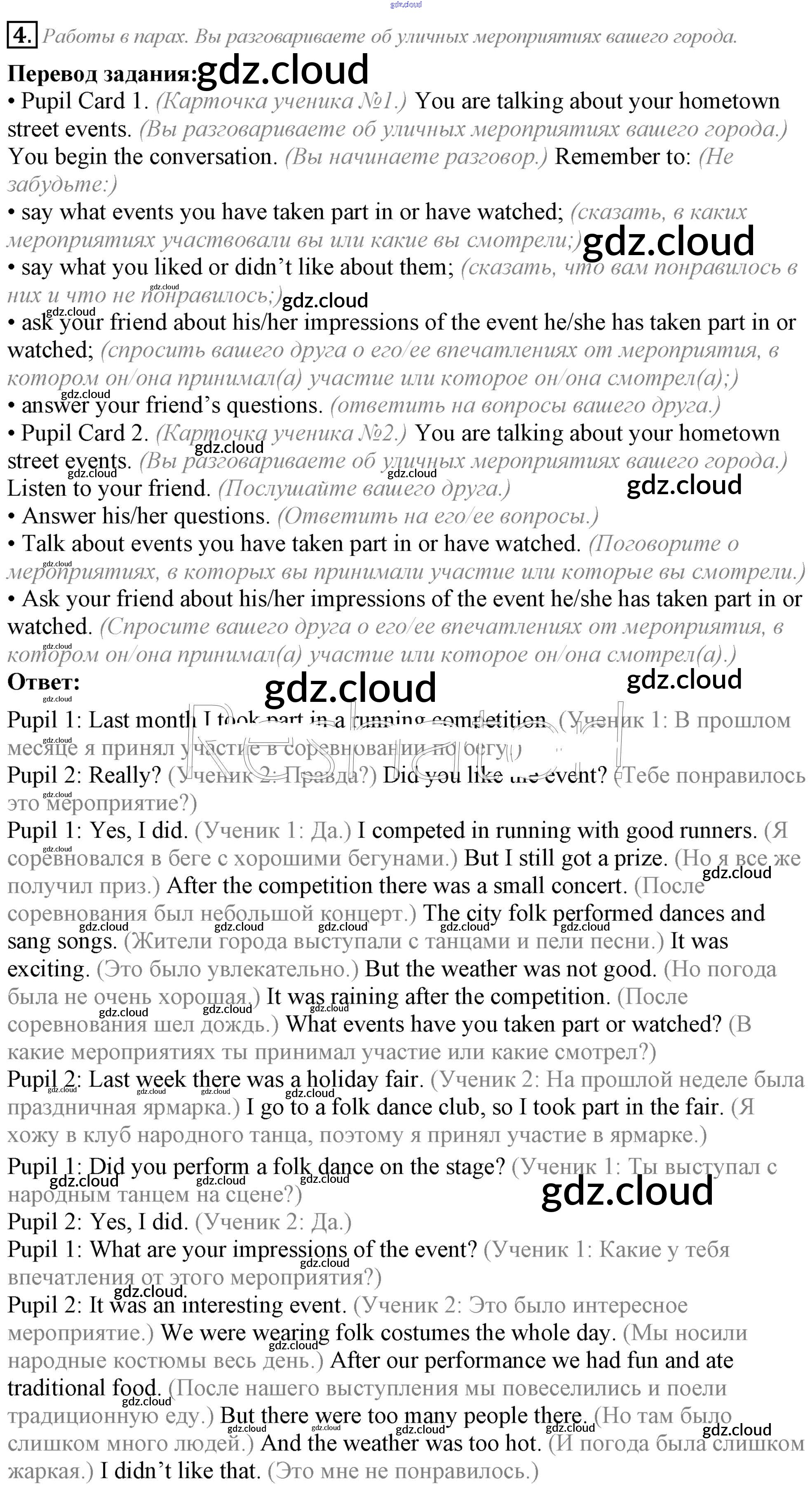 Ответ на задание 4 Учебник Английский язык за 5 (пятый) класс Кузовлев, Лапа, Костина, Дуванова, Кузнецова УМК 2015