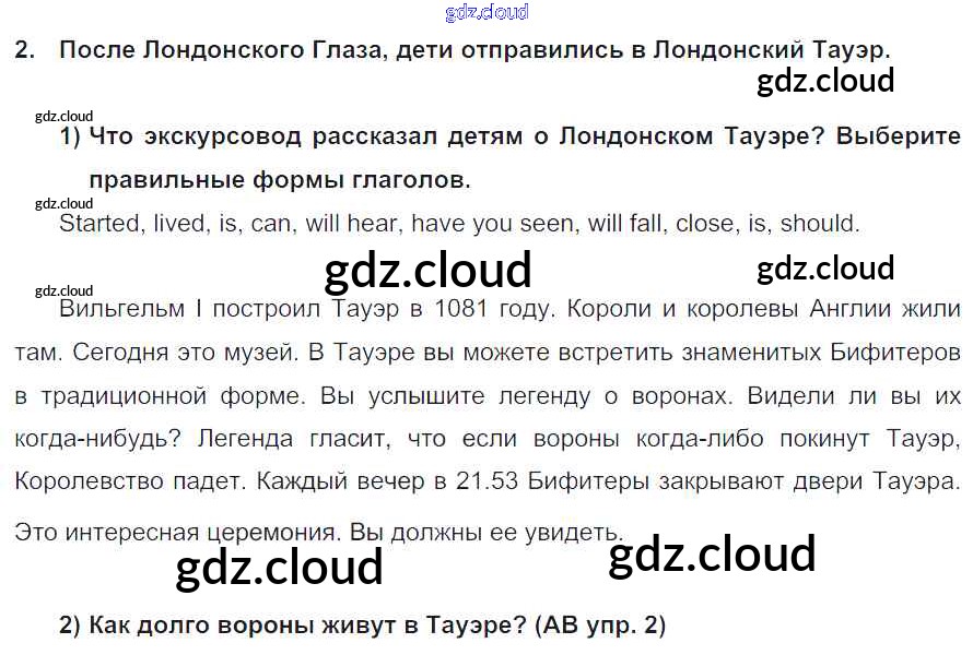 Ответ на задание 2 Учебник Английский язык за 5 (пятый) класс Кузовлев, Лапа, Костина, Дуванова, Кузнецова УМК 2015