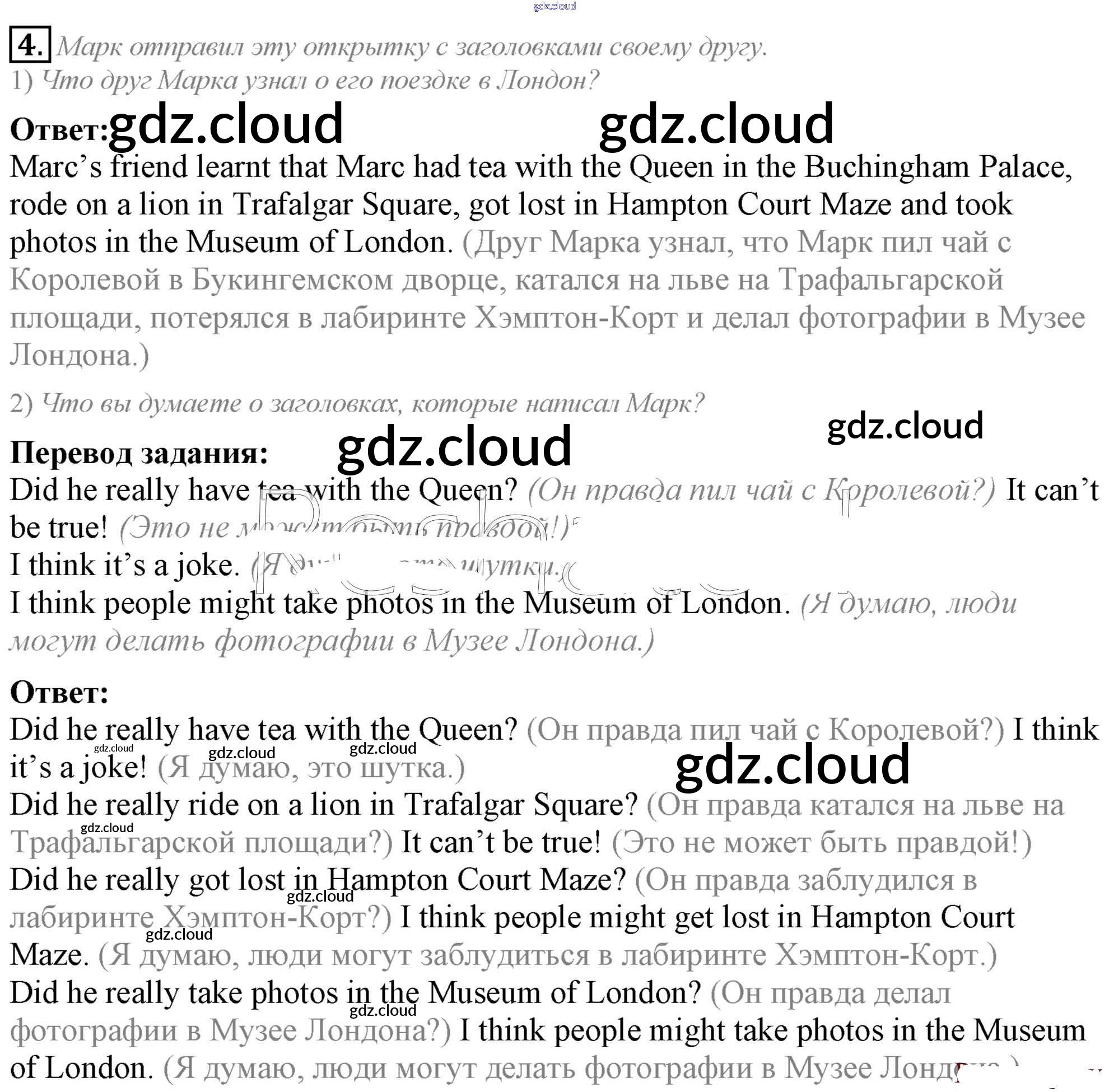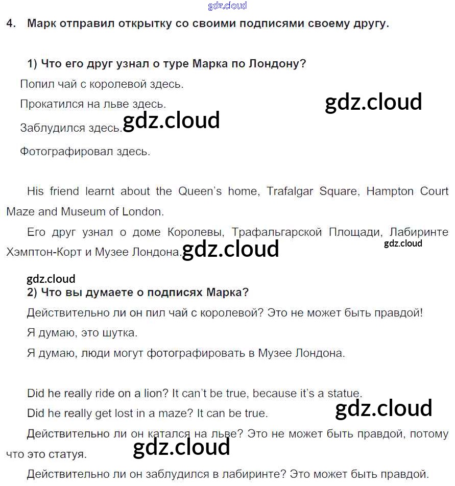 Ответ на задание 4 Учебник Английский язык за 5 (пятый) класс Кузовлев, Лапа, Костина, Дуванова, Кузнецова УМК 2015