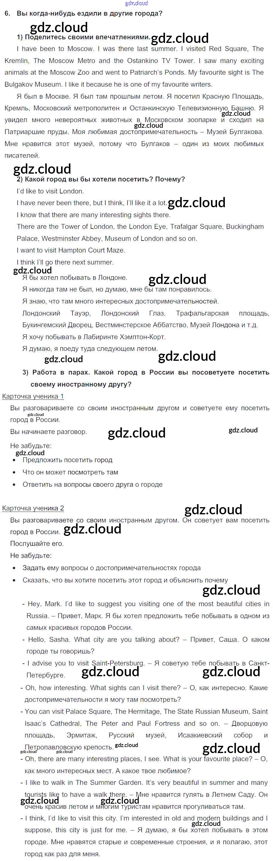 Ответ на задание 6 Учебник Английский язык за 5 (пятый) класс Кузовлев, Лапа, Костина, Дуванова, Кузнецова УМК 2015