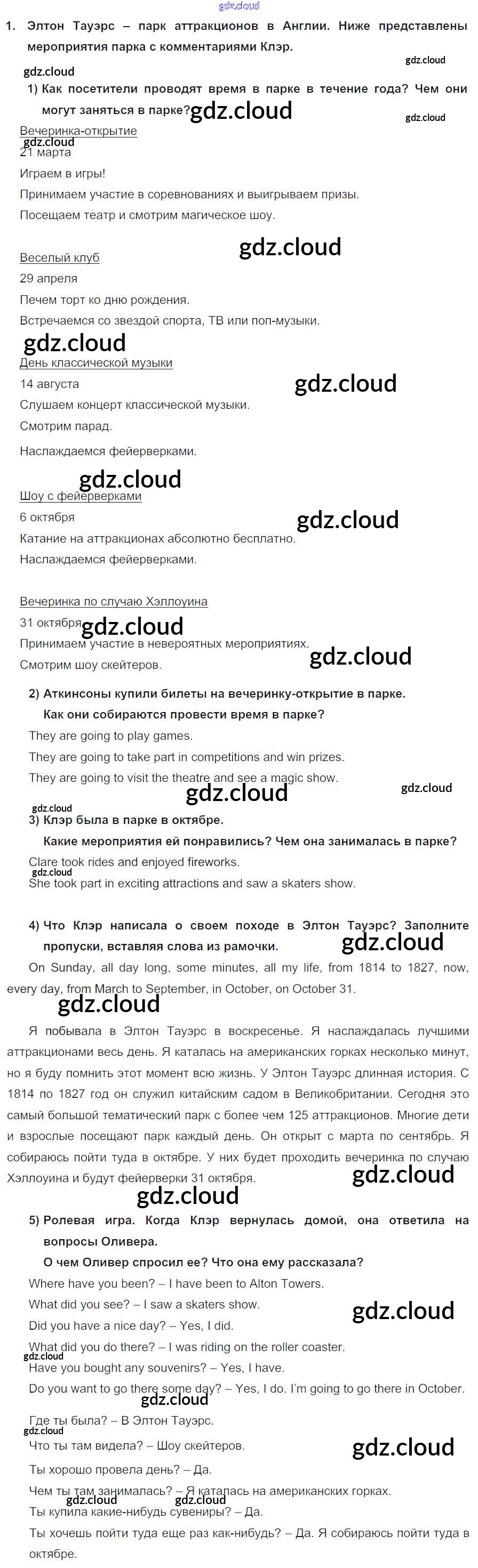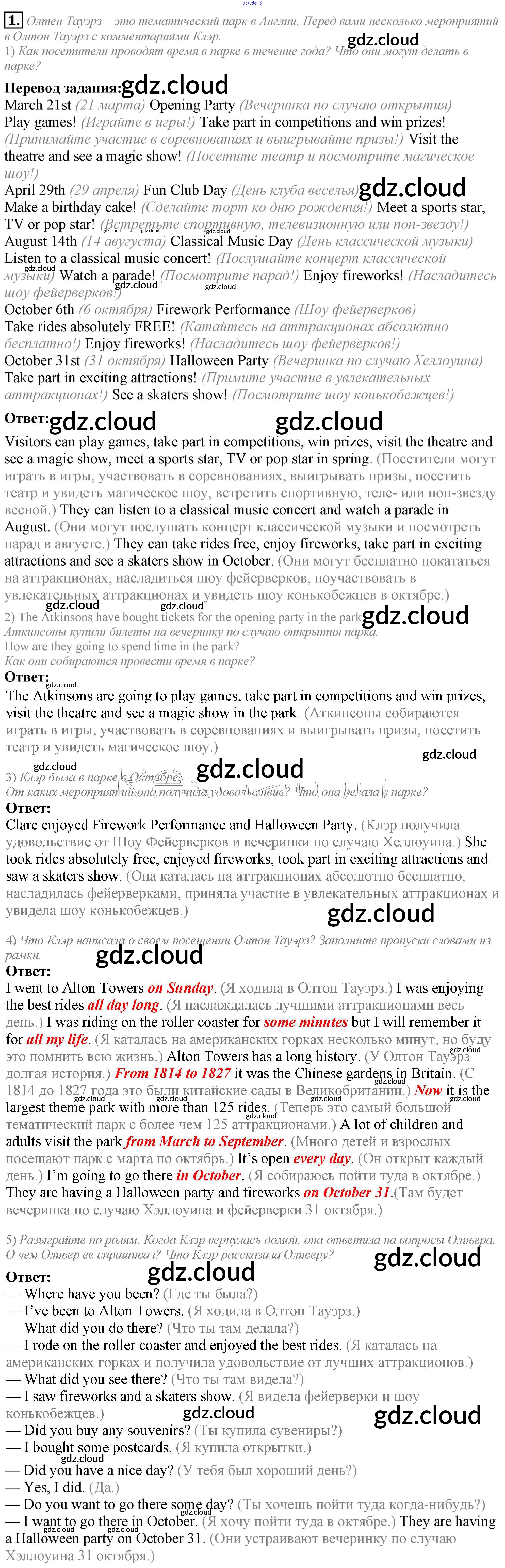 Ответ на задание 1 Учебник Английский язык за 5 (пятый) класс Кузовлев, Лапа, Костина, Дуванова, Кузнецова УМК 2015