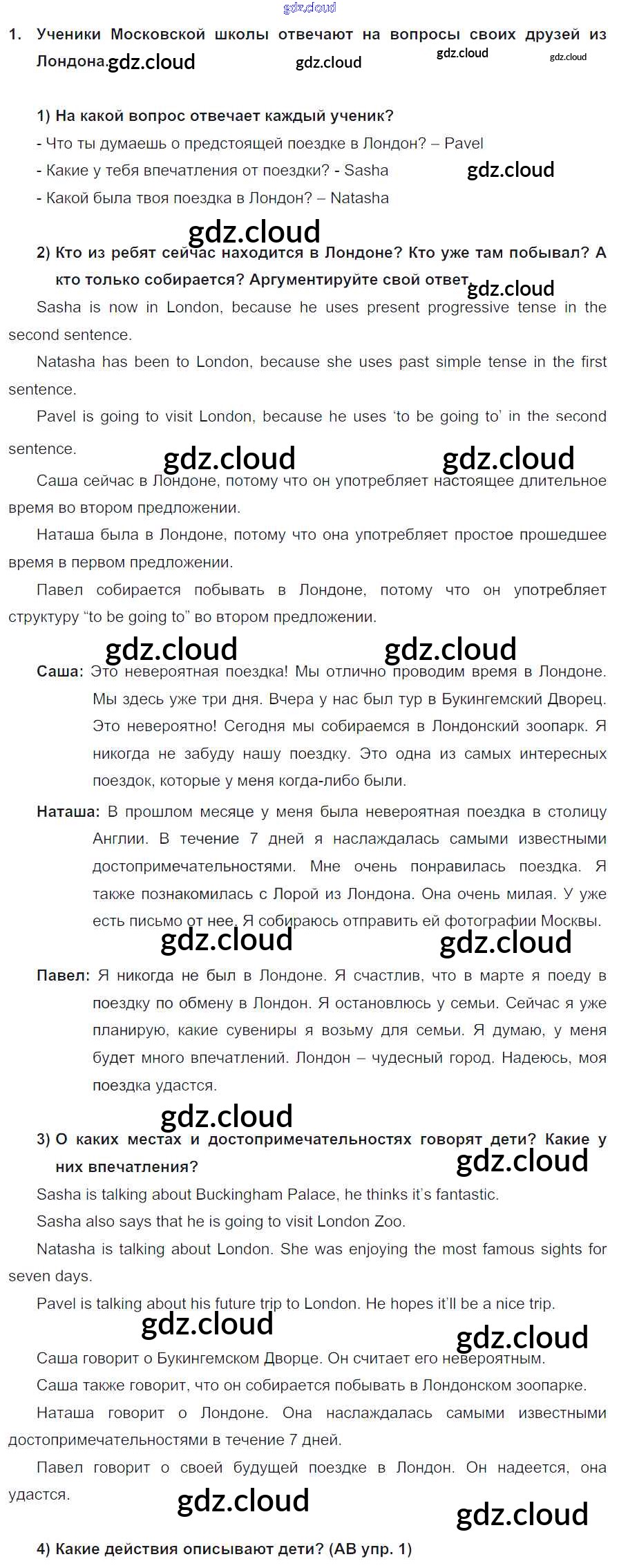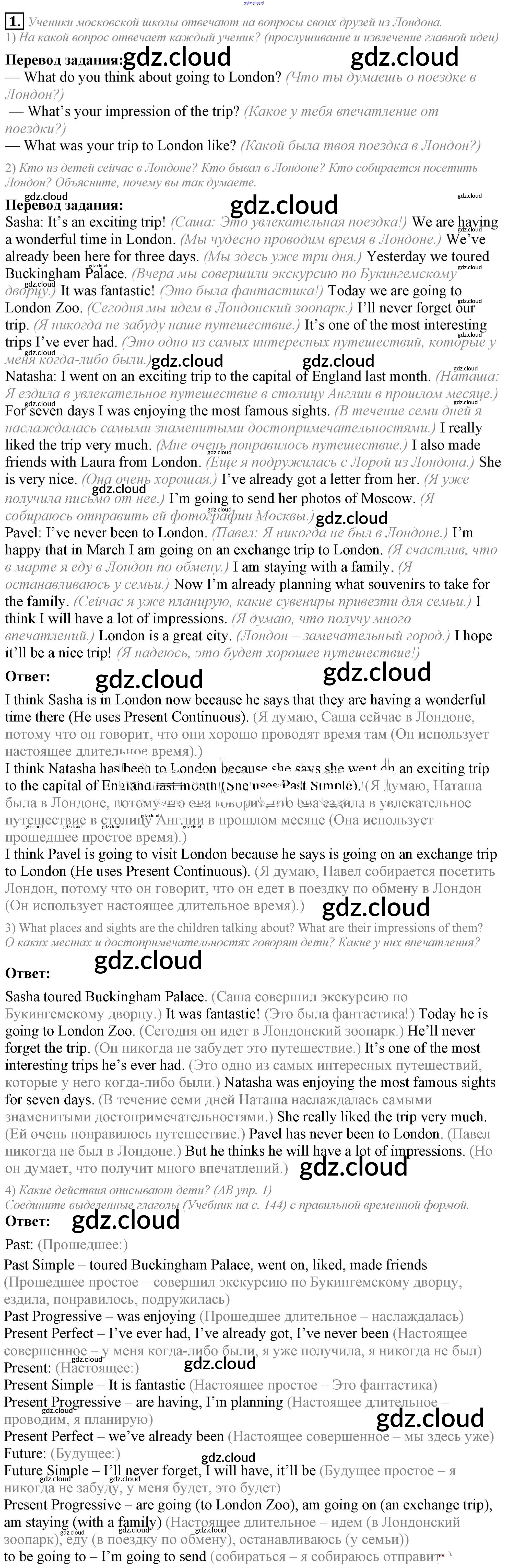 Ответ на задание 1 Учебник Английский язык за 5 (пятый) класс Кузовлев, Лапа, Костина, Дуванова, Кузнецова УМК 2015