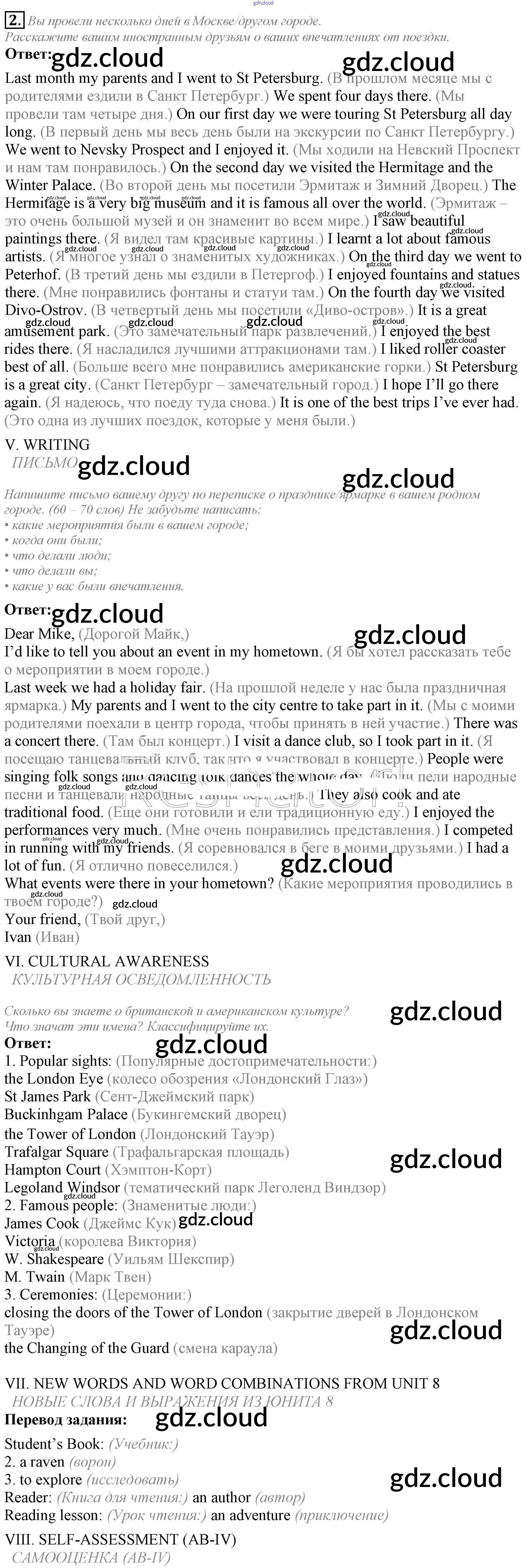 Lesson 7-8. Test yourself Ответы к Unit 8. My best impressions по Английскому языку 5 класс Учебник Кузовлев УМК Просвещение