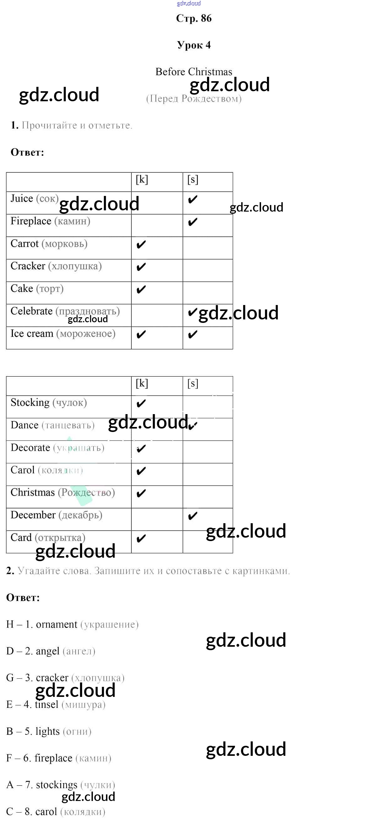 Ответ на задание стр.86 Рабочая тетрадь Английский язык за 5 (пятый) класс Лапицкая, Севрюкова, Калишевич, Седунова 2016 Часть 1, 2
