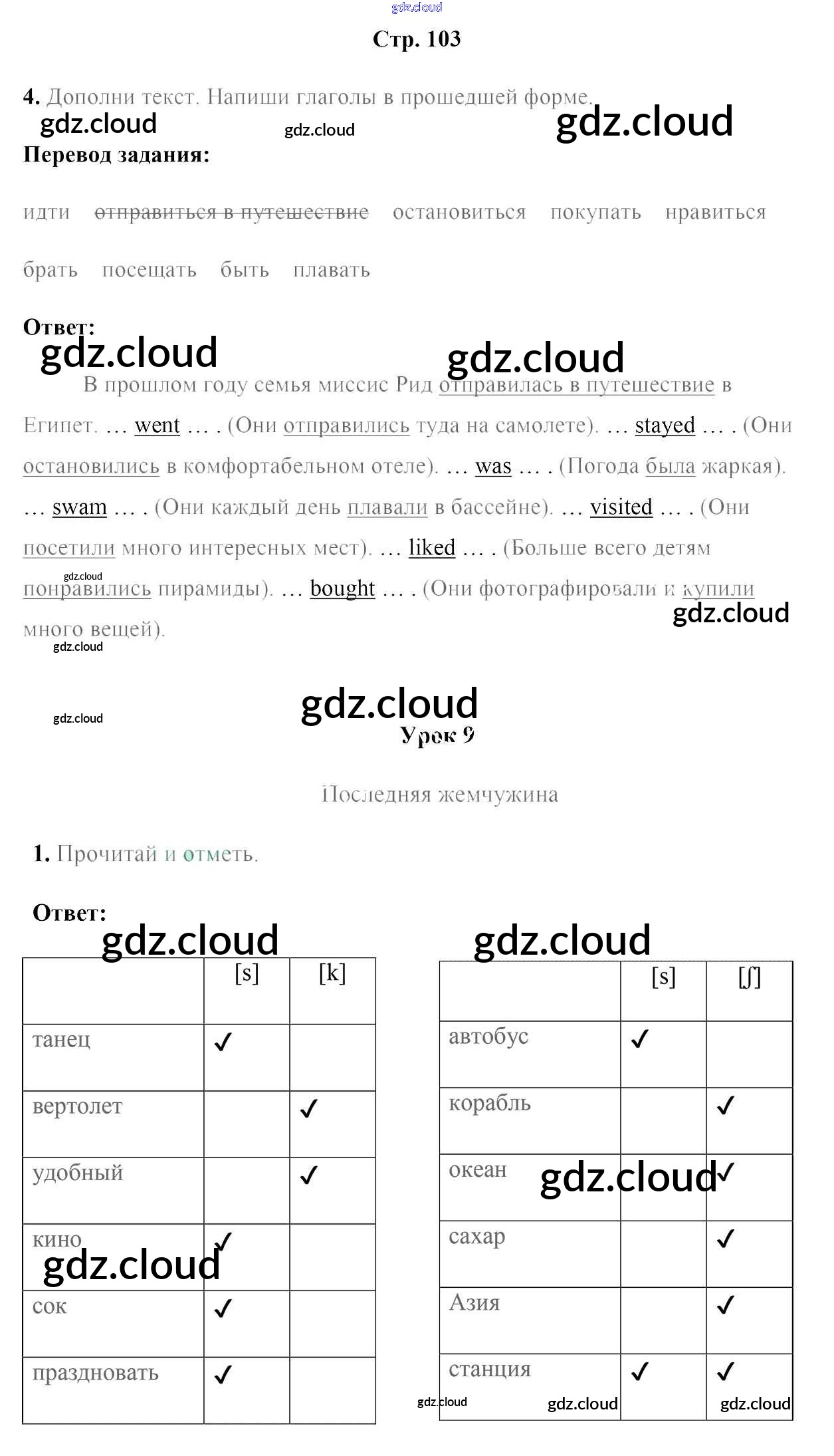 Ответ на задание стр.103 Рабочая тетрадь Английский язык за 5 (пятый) класс Лапицкая, Севрюкова, Калишевич, Седунова 2016 Часть 1, 2