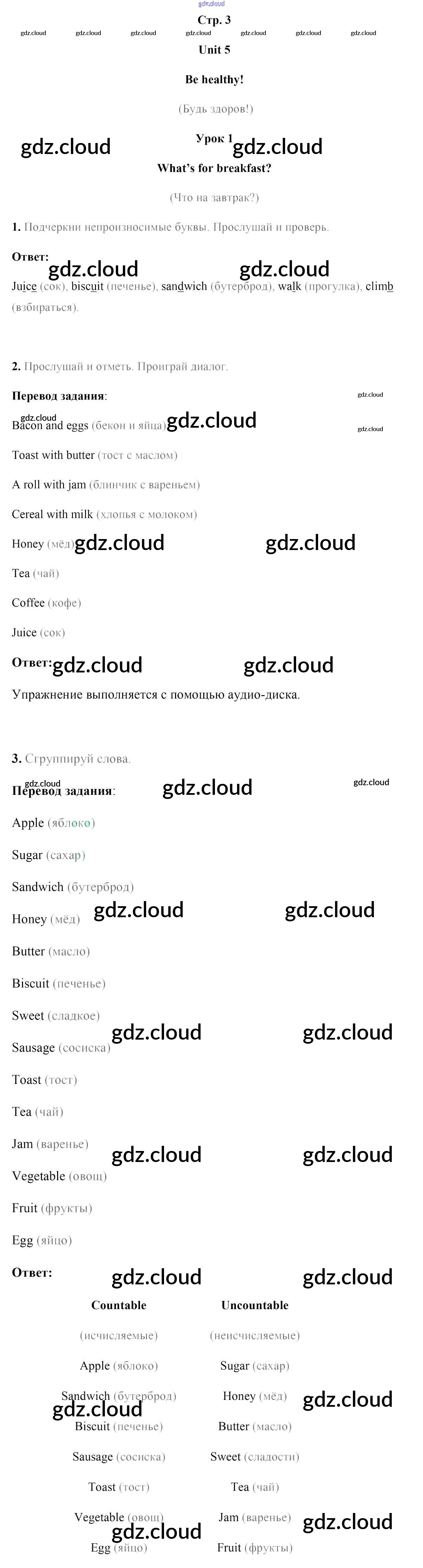 Ответ на задание стр.3 Рабочая тетрадь Английский язык за 5 (пятый) класс Лапицкая, Севрюкова, Калишевич, Седунова 2016 Часть 1, 2