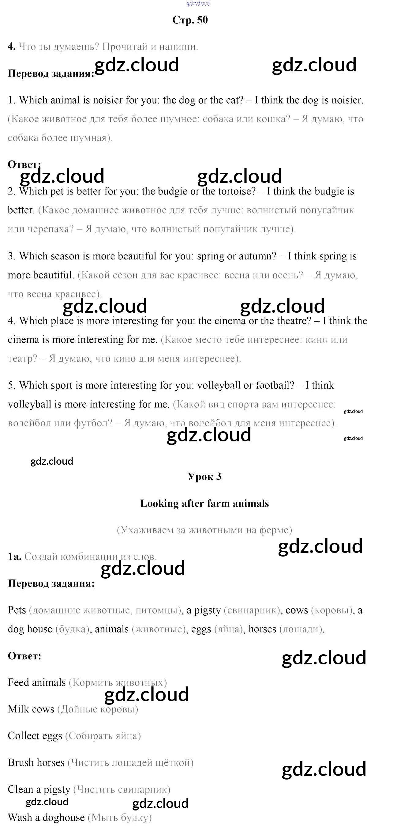 Ответ на задание стр.50 Рабочая тетрадь Английский язык за 5 (пятый) класс Лапицкая, Севрюкова, Калишевич, Седунова 2016 Часть 1, 2