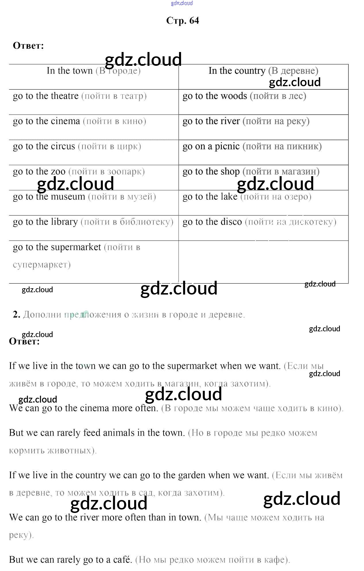 Ответ на задание стр.64 Рабочая тетрадь Английский язык за 5 (пятый) класс Лапицкая, Севрюкова, Калишевич, Седунова 2016 Часть 1, 2