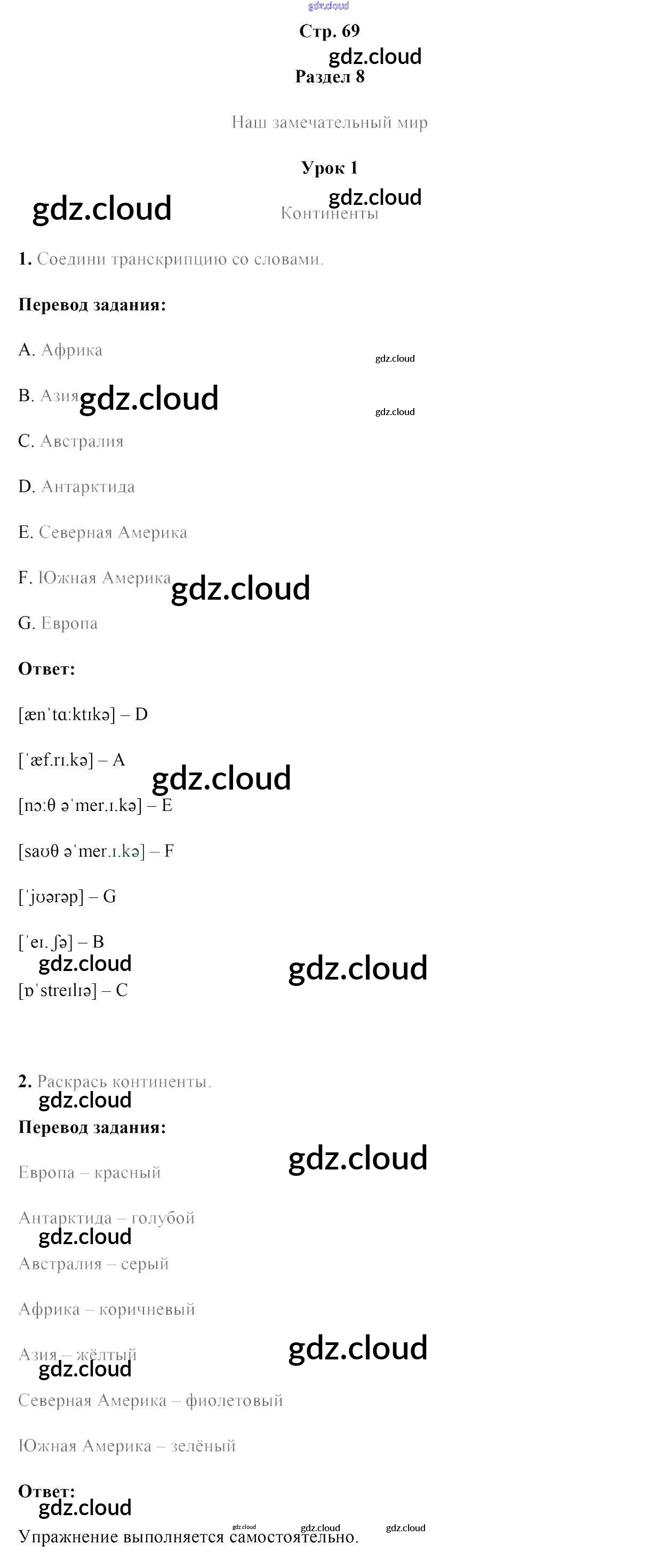 Ответ на задание стр.69 Рабочая тетрадь Английский язык за 5 (пятый) класс Лапицкая, Севрюкова, Калишевич, Седунова 2016 Часть 1, 2