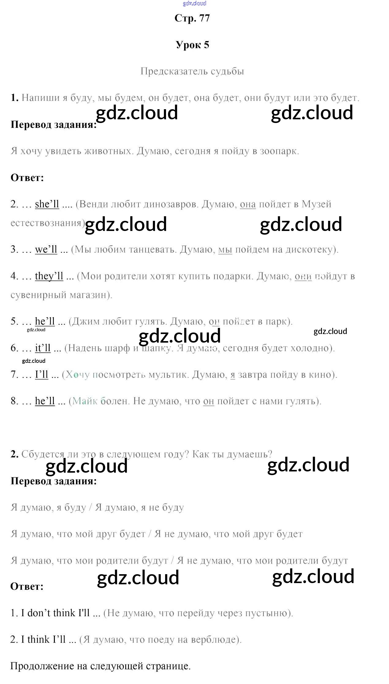 Ответ на задание стр.77 Рабочая тетрадь Английский язык за 5 (пятый) класс Лапицкая, Севрюкова, Калишевич, Седунова 2016 Часть 1, 2