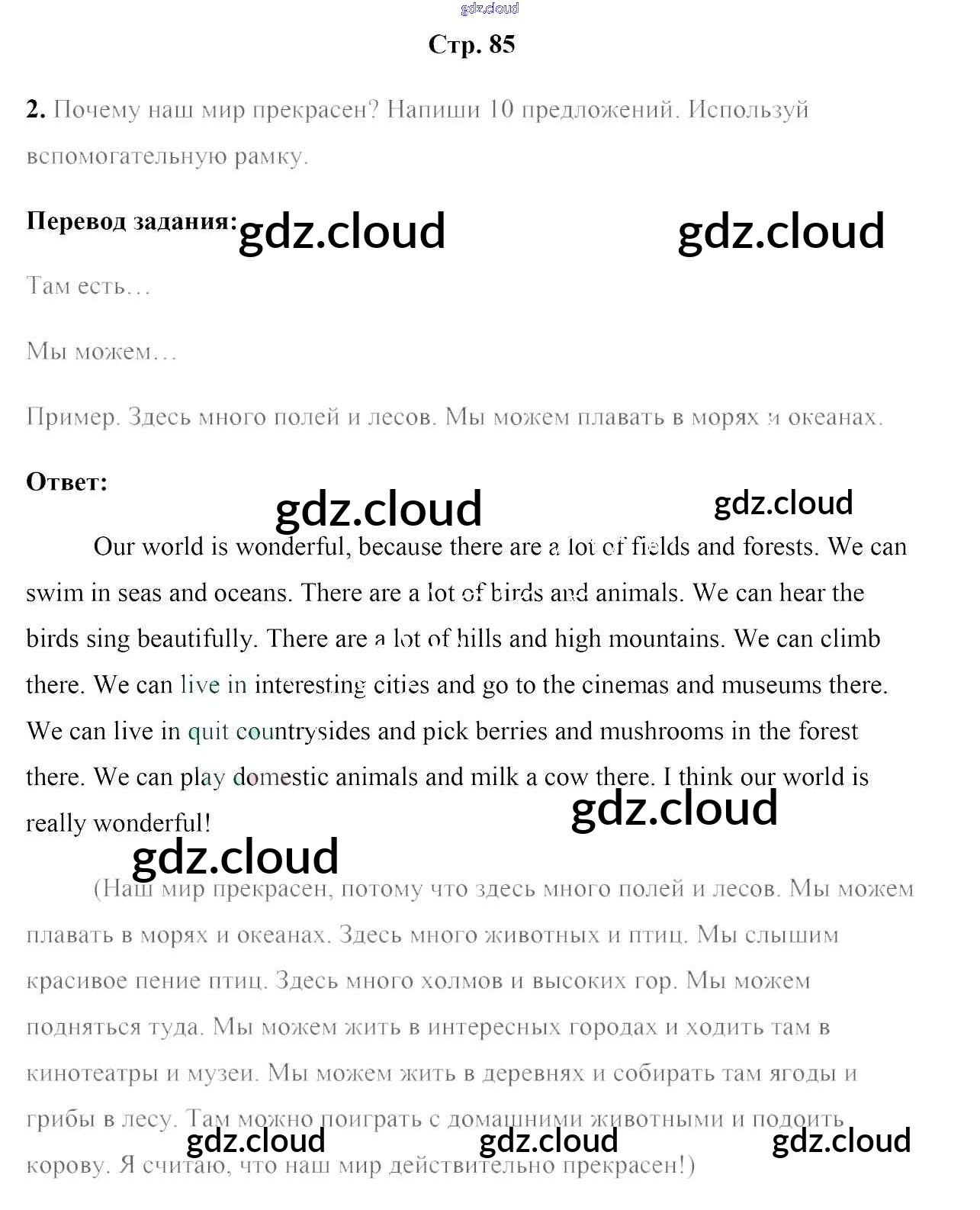 Ответ на задание стр.85 Рабочая тетрадь Английский язык за 5 (пятый) класс Лапицкая, Севрюкова, Калишевич, Седунова 2016 Часть 1, 2