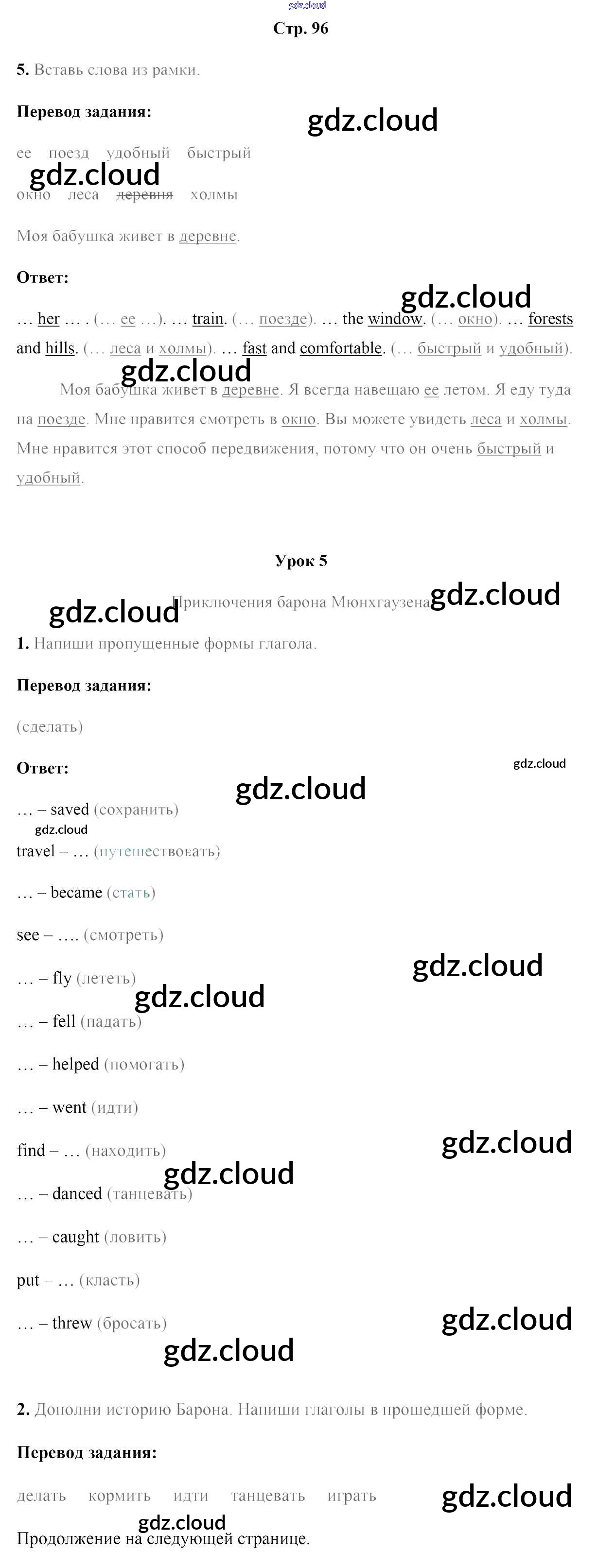 Ответ на задание стр.96 Рабочая тетрадь Английский язык за 5 (пятый) класс Лапицкая, Севрюкова, Калишевич, Седунова 2016 Часть 1, 2