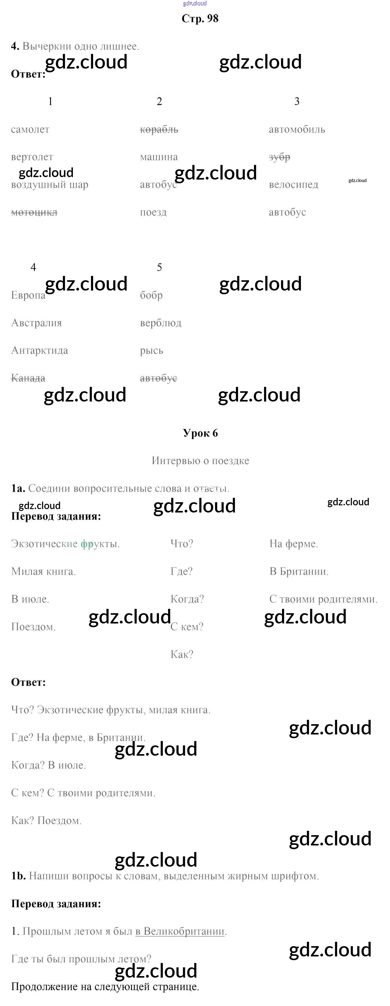Ответ на задание стр.98 Рабочая тетрадь Английский язык за 5 (пятый) класс Лапицкая, Севрюкова, Калишевич, Седунова 2016 Часть 1, 2
