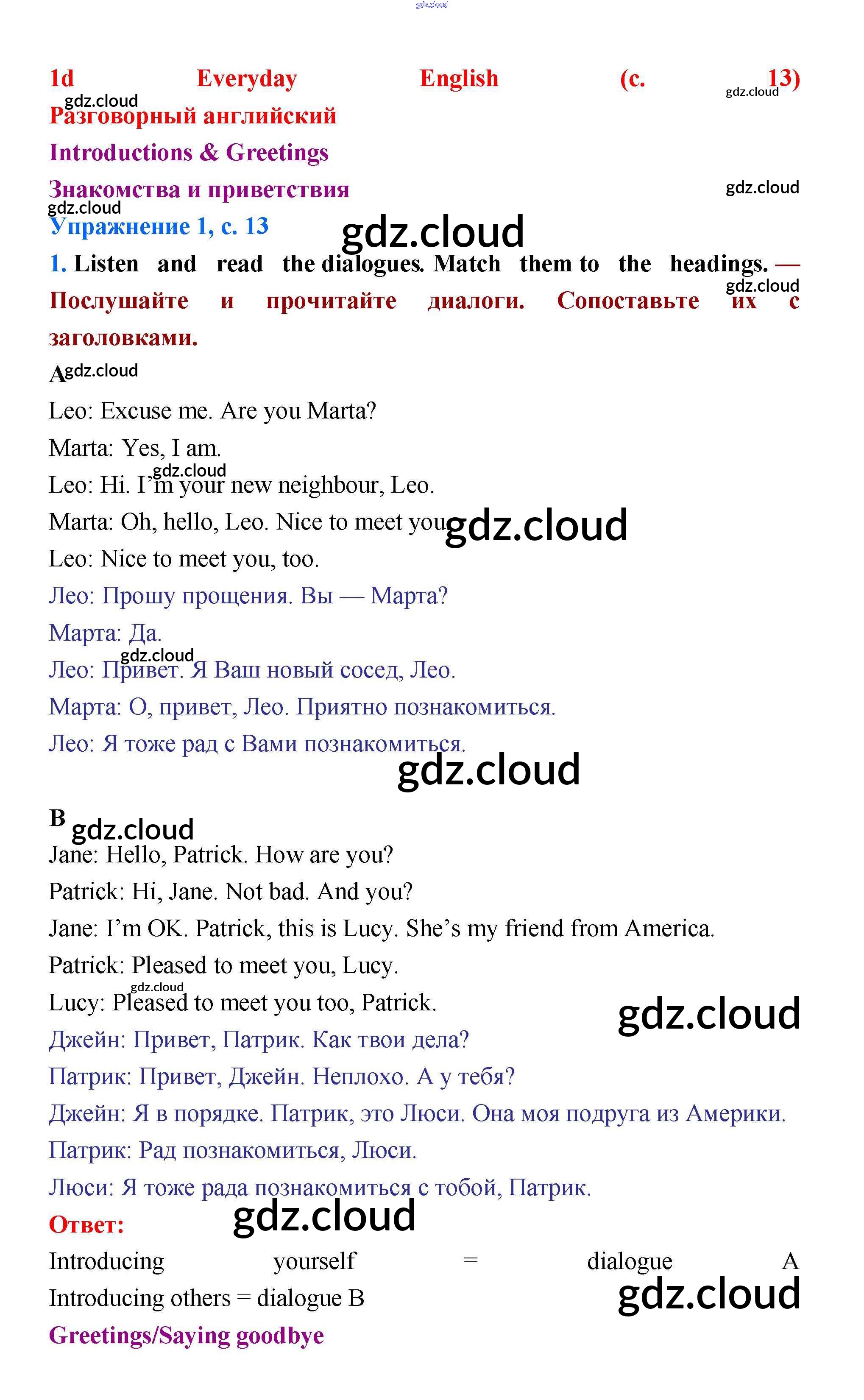 Ответ на задание стр.13 Учебник Английский язык за 5 (пятый) класс Баранова, Эванс, Дули, Копылова, Мильруд Starlight Углубленный уровень 2015