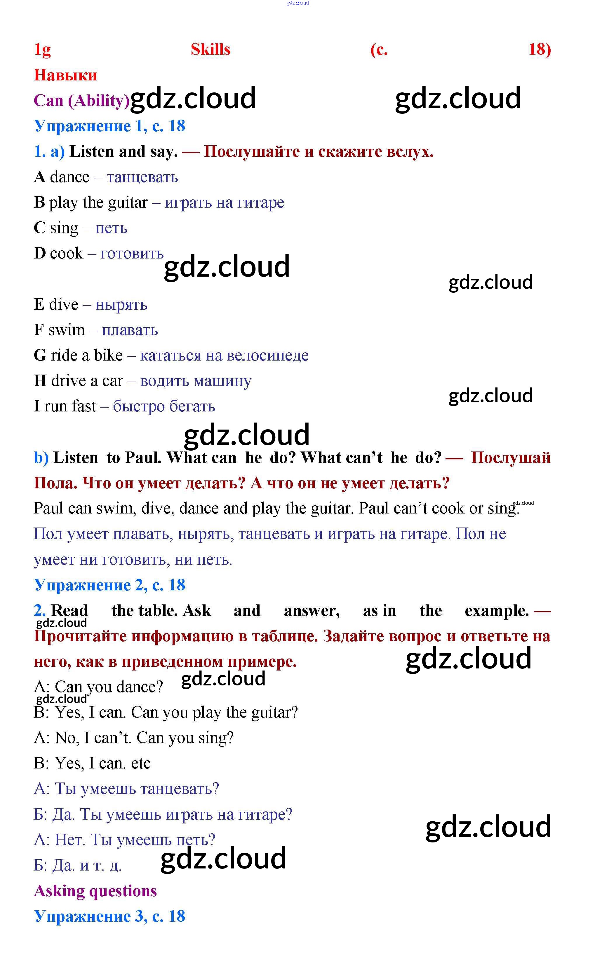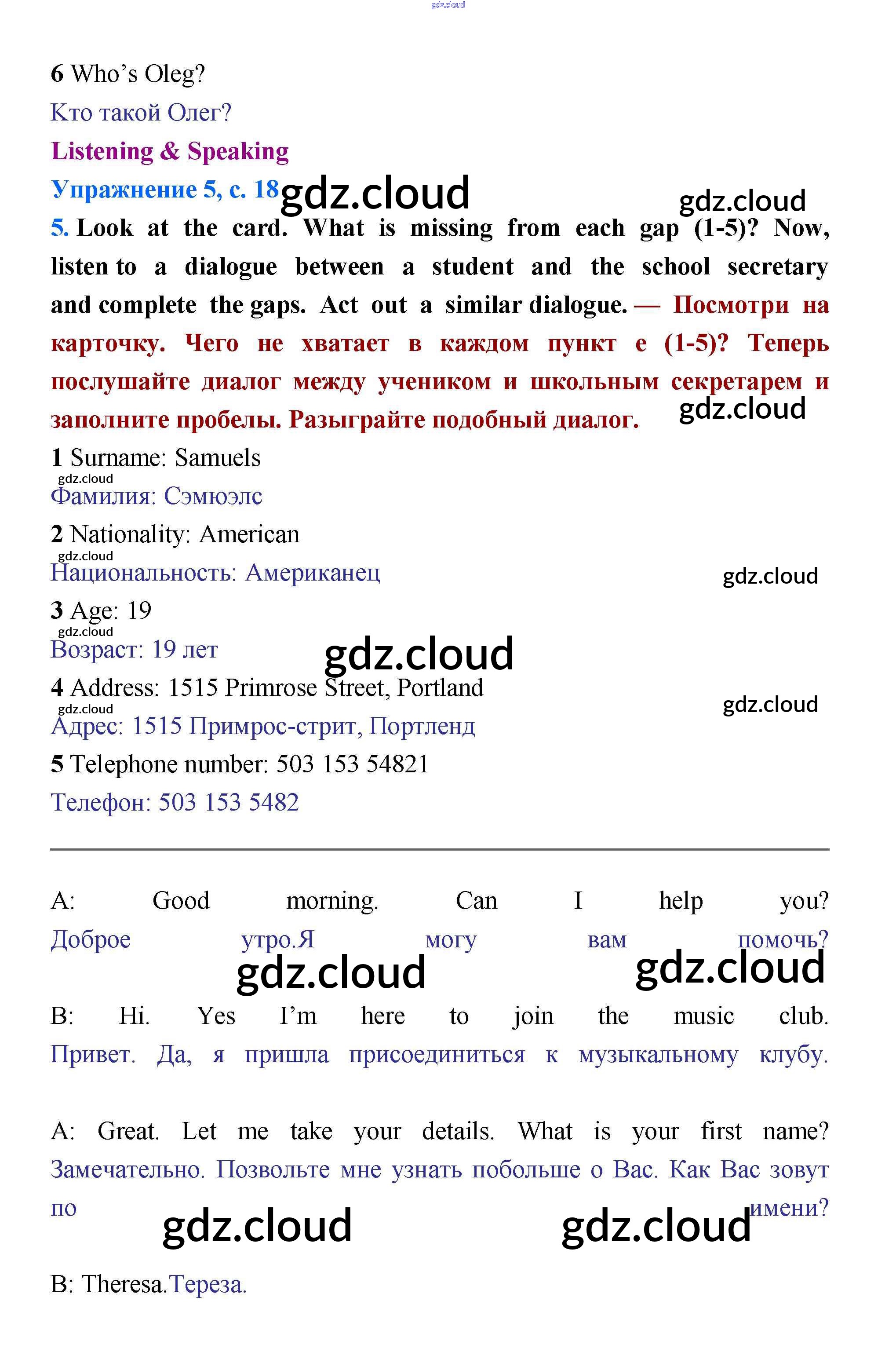 Ответ на задание стр.18 Учебник Английский язык за 5 (пятый) класс Баранова, Эванс, Дули, Копылова, Мильруд Starlight Углубленный уровень 2015