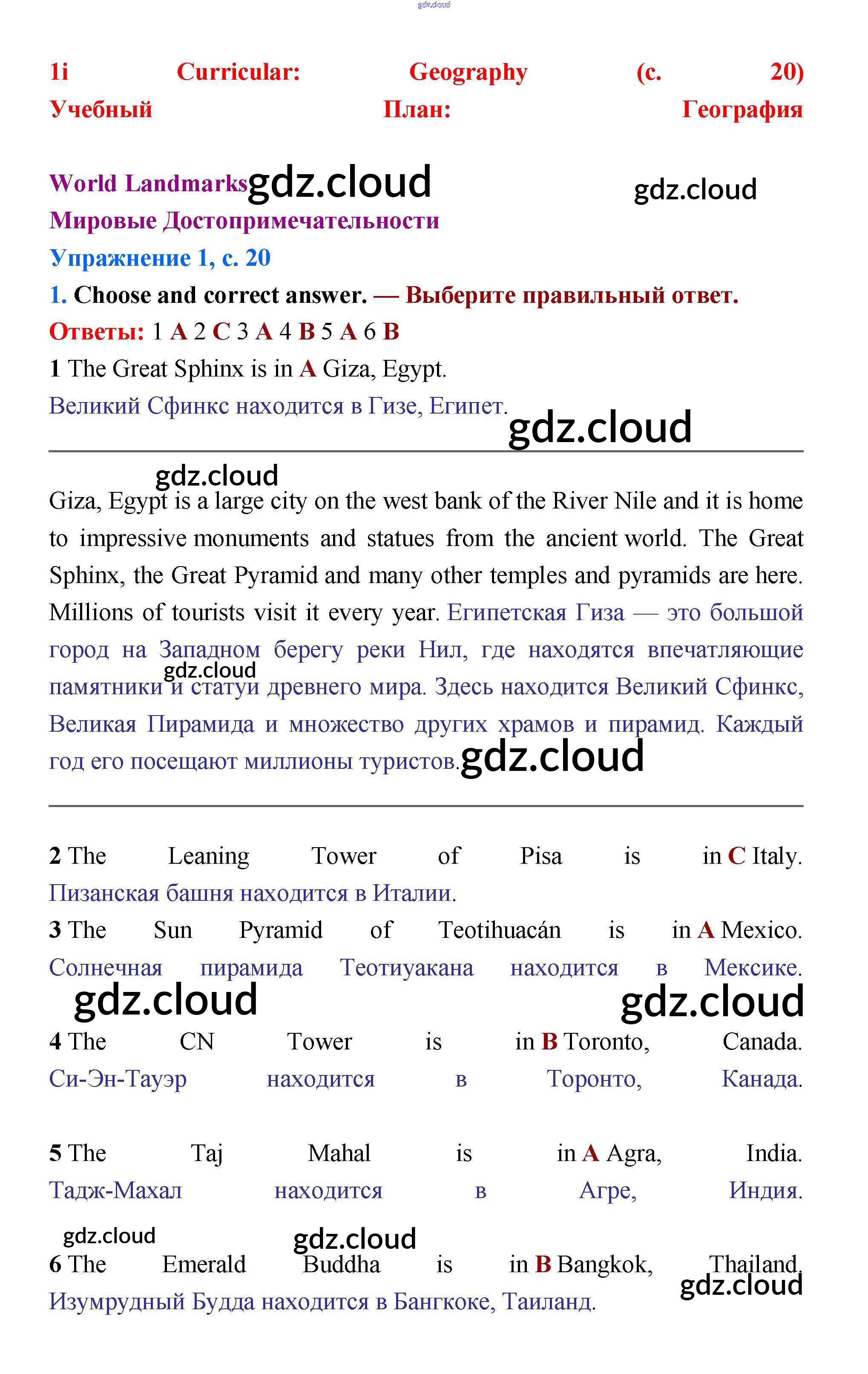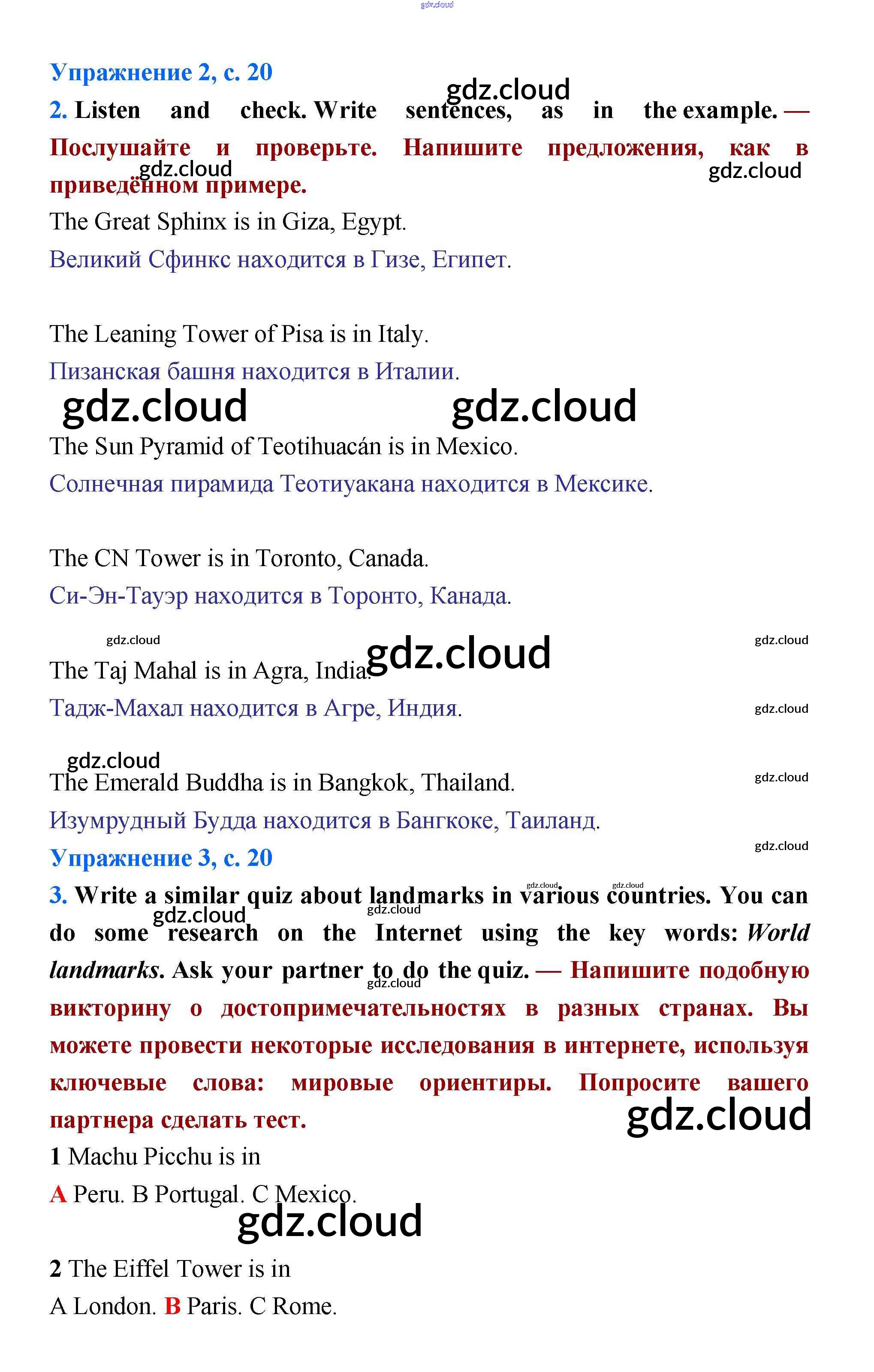 Ответ на задание стр.20 Учебник Английский язык за 5 (пятый) класс Баранова, Эванс, Дули, Копылова, Мильруд Starlight Углубленный уровень 2015