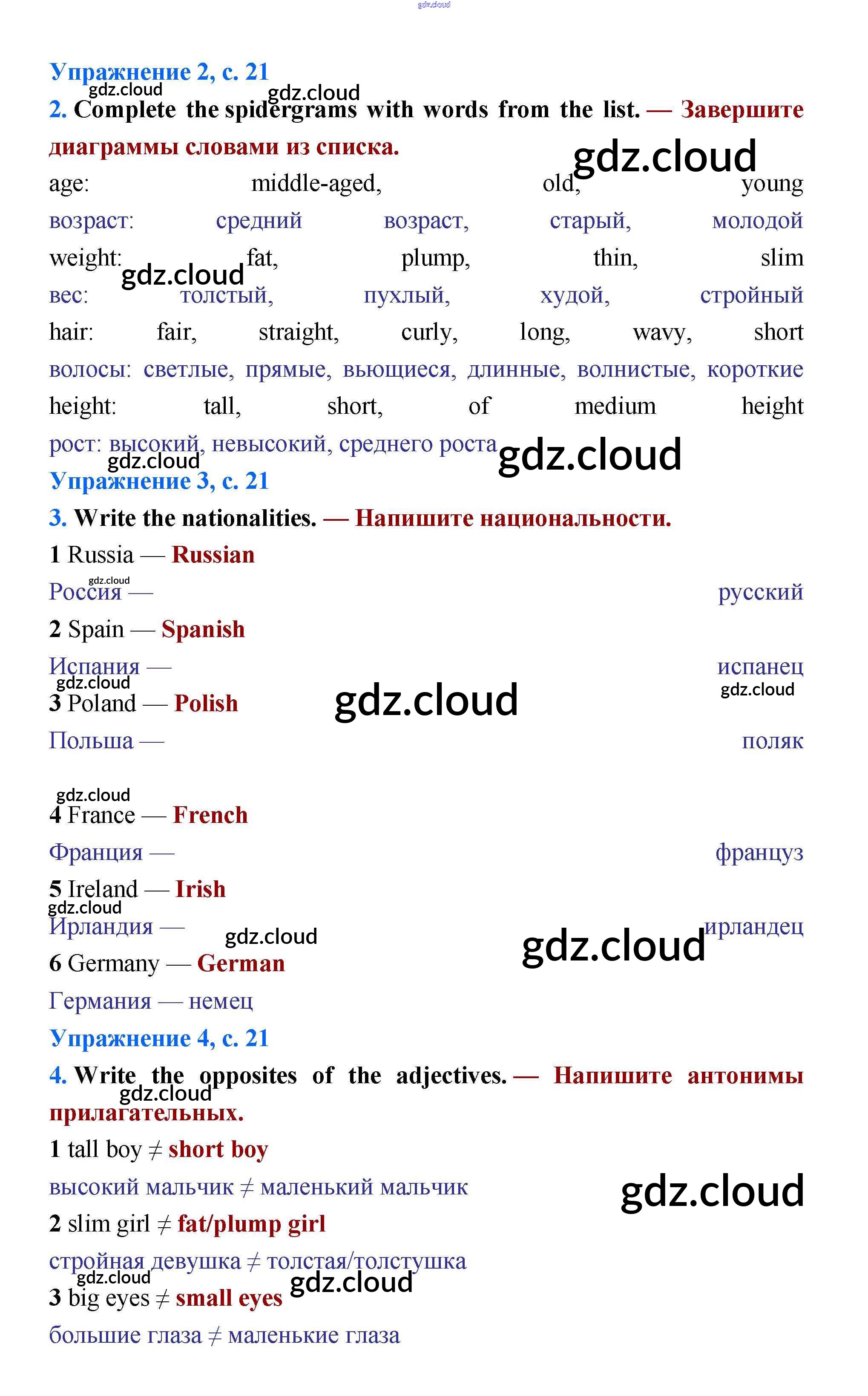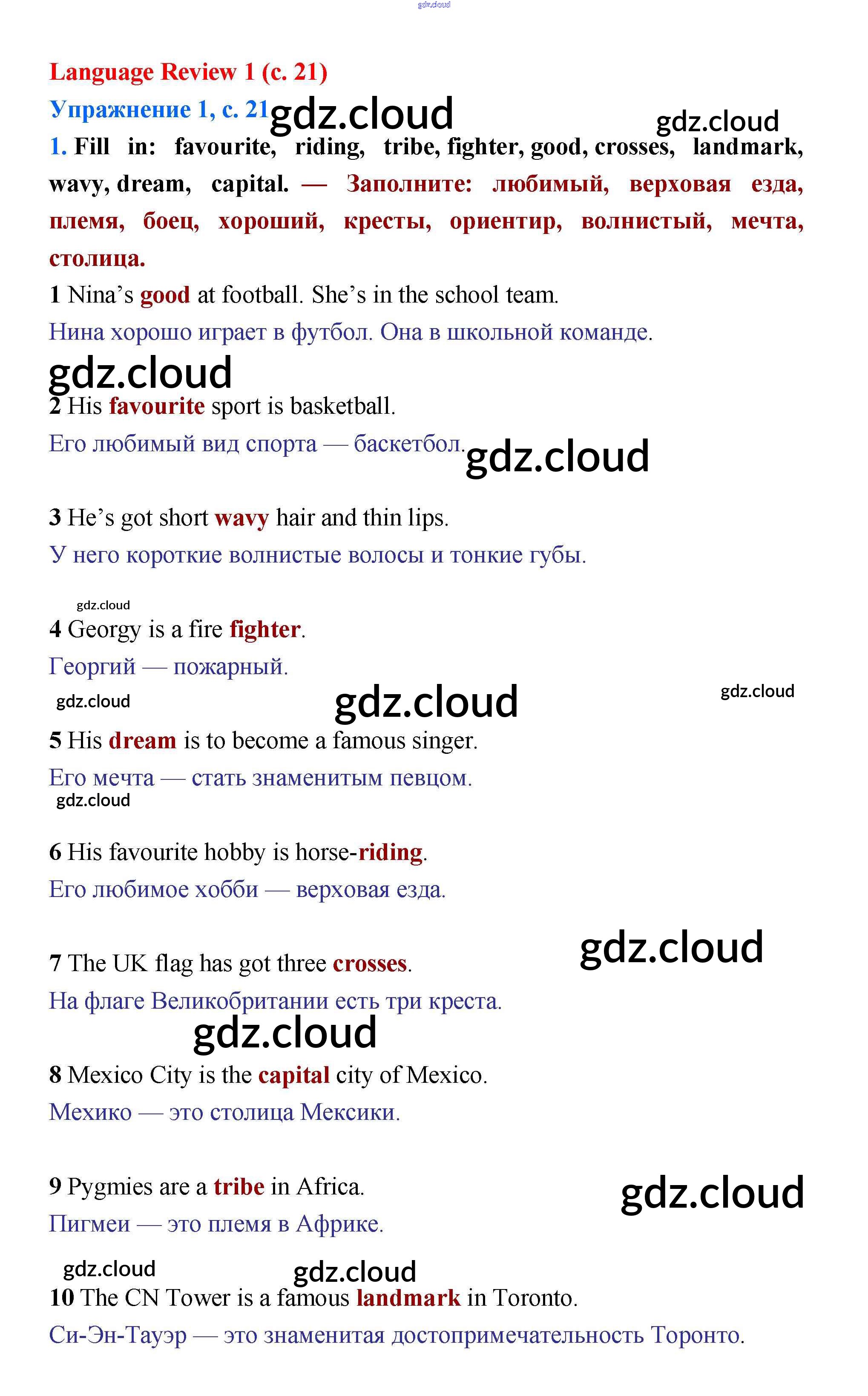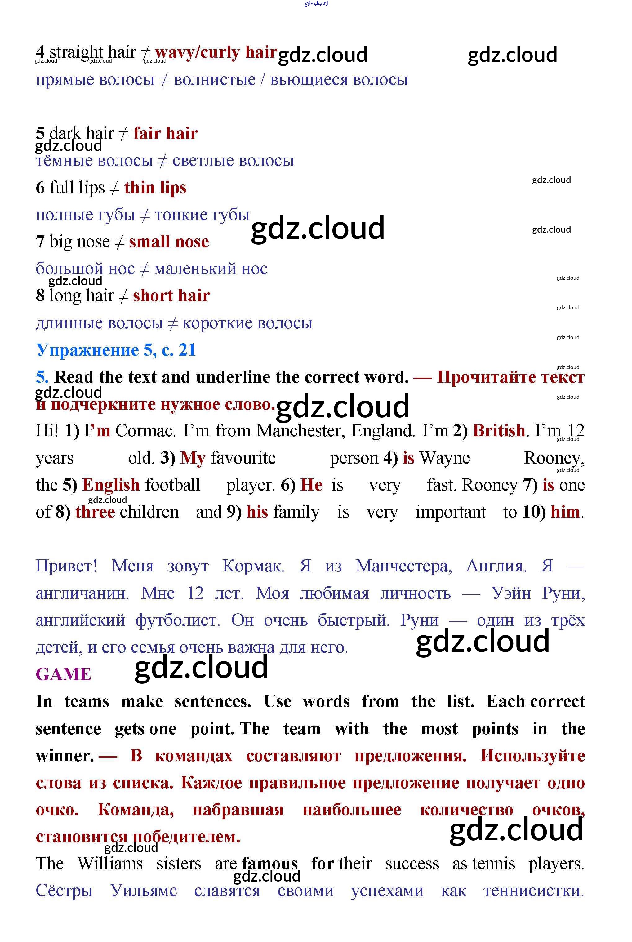Ответ на задание стр.21 Учебник Английский язык за 5 (пятый) класс Баранова, Эванс, Дули, Копылова, Мильруд Starlight Углубленный уровень 2015