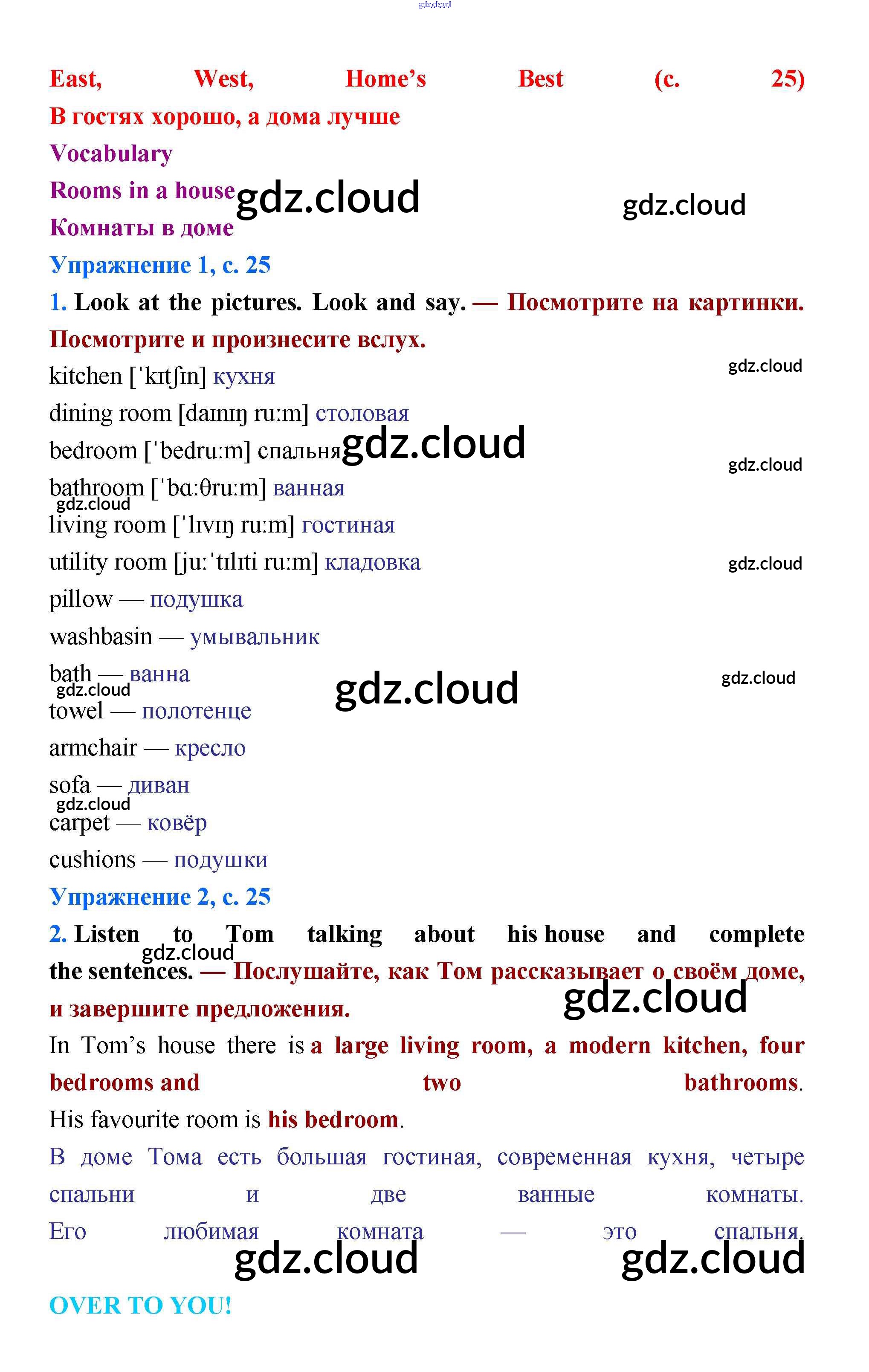 Ответ на задание стр.25 Учебник Английский язык за 5 (пятый) класс Баранова, Эванс, Дули, Копылова, Мильруд Starlight Углубленный уровень 2015