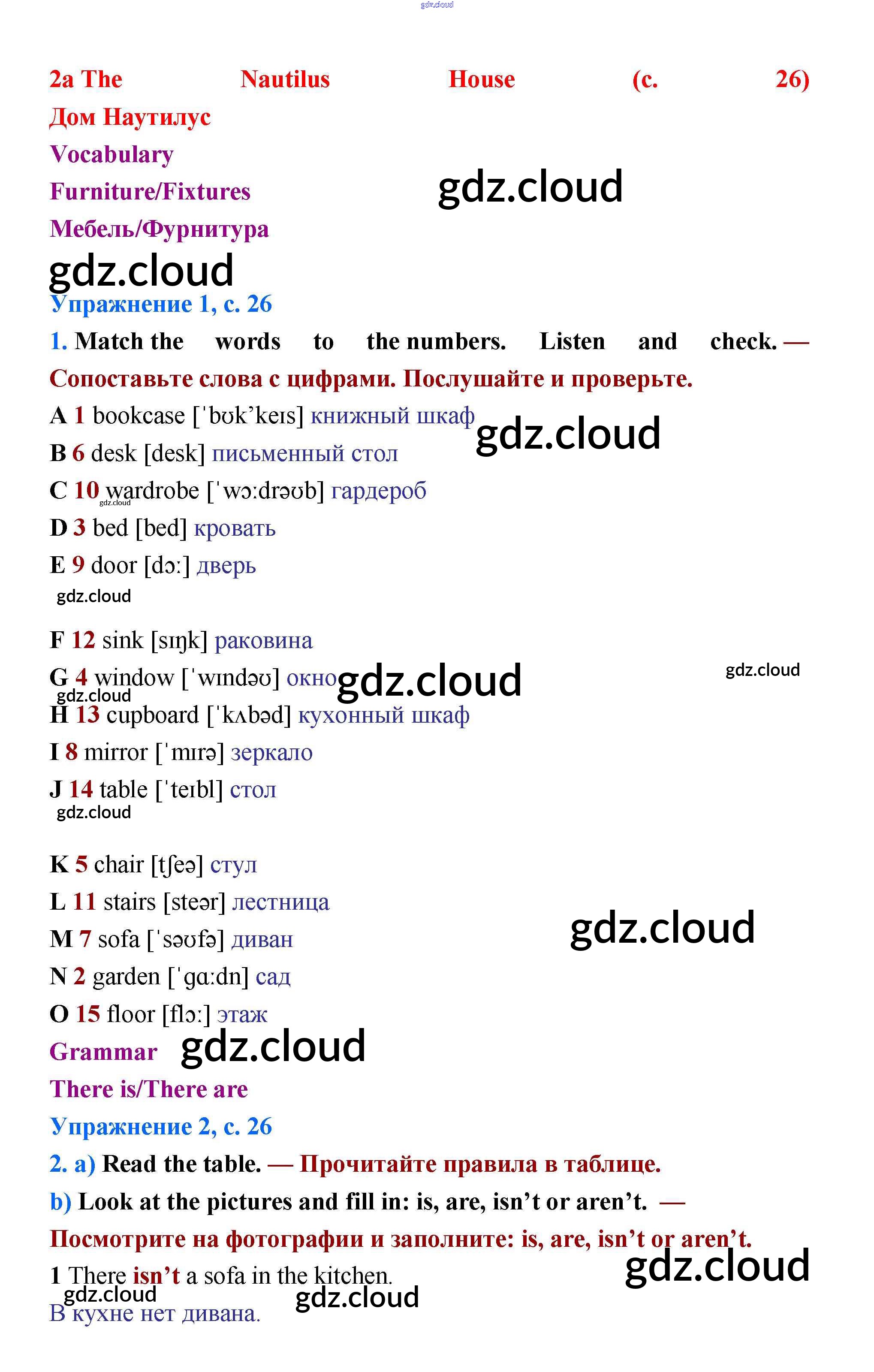 Ответ на задание стр.26 Учебник Английский язык за 5 (пятый) класс Баранова, Эванс, Дули, Копылова, Мильруд Starlight Углубленный уровень 2015