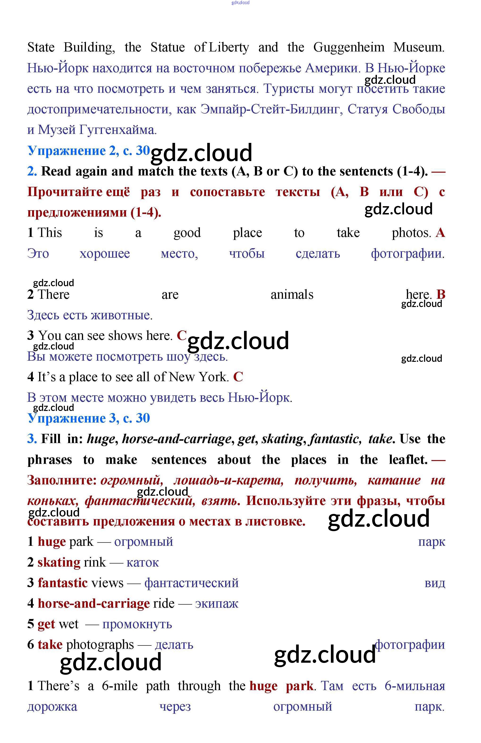 Ответ на задание стр.30 Учебник Английский язык за 5 (пятый) класс Баранова, Эванс, Дули, Копылова, Мильруд Starlight Углубленный уровень 2015