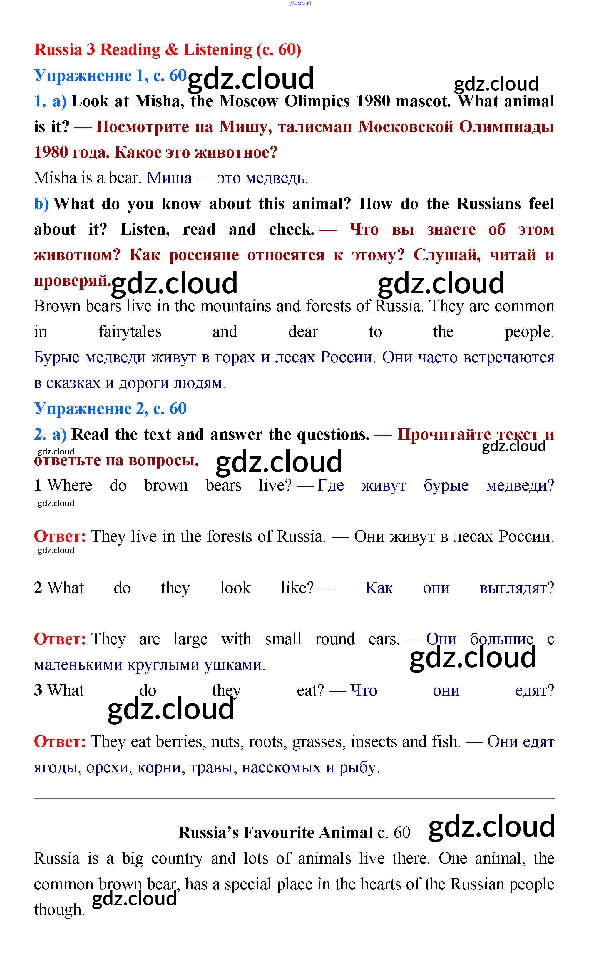 Ответ на задание стр.60 Учебник Английский язык за 5 (пятый) класс Баранова, Эванс, Дули, Копылова, Мильруд Starlight Углубленный уровень 2015