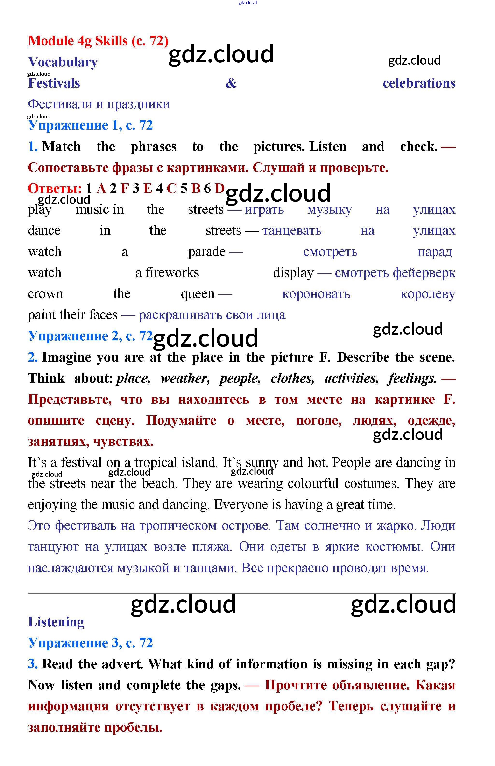 Ответ на задание стр.72 Учебник Английский язык за 5 (пятый) класс Баранова, Эванс, Дули, Копылова, Мильруд Starlight Углубленный уровень 2015
