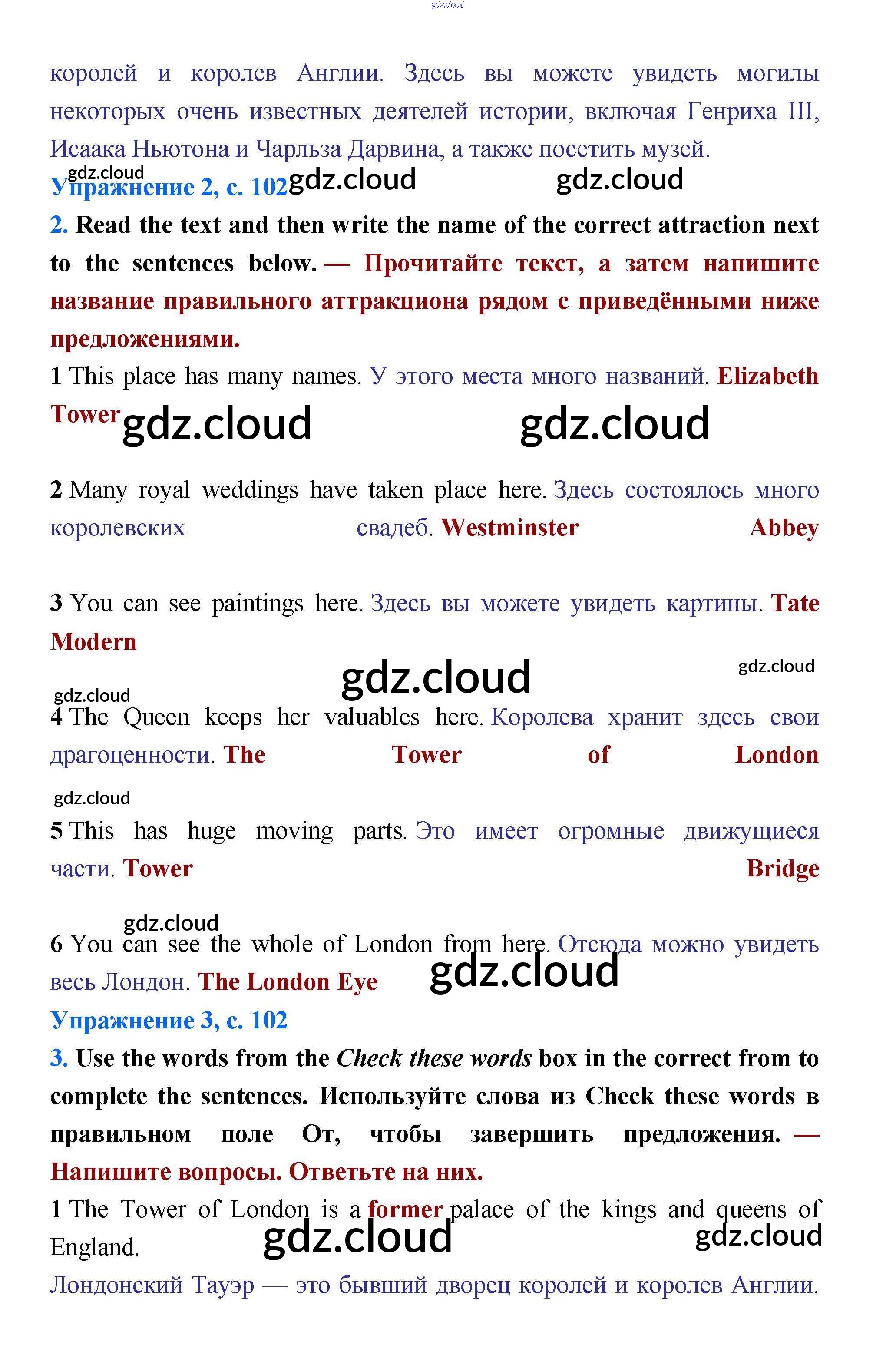 Ответ на задание стр.102 Учебник Английский язык за 5 (пятый) класс Баранова, Эванс, Дули, Копылова, Мильруд Starlight Углубленный уровень 2015