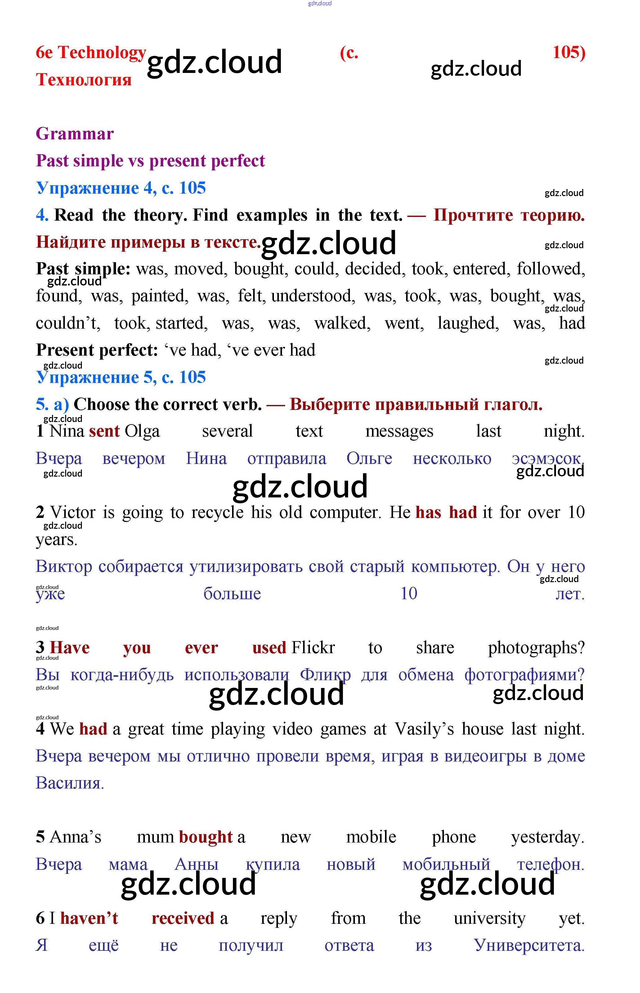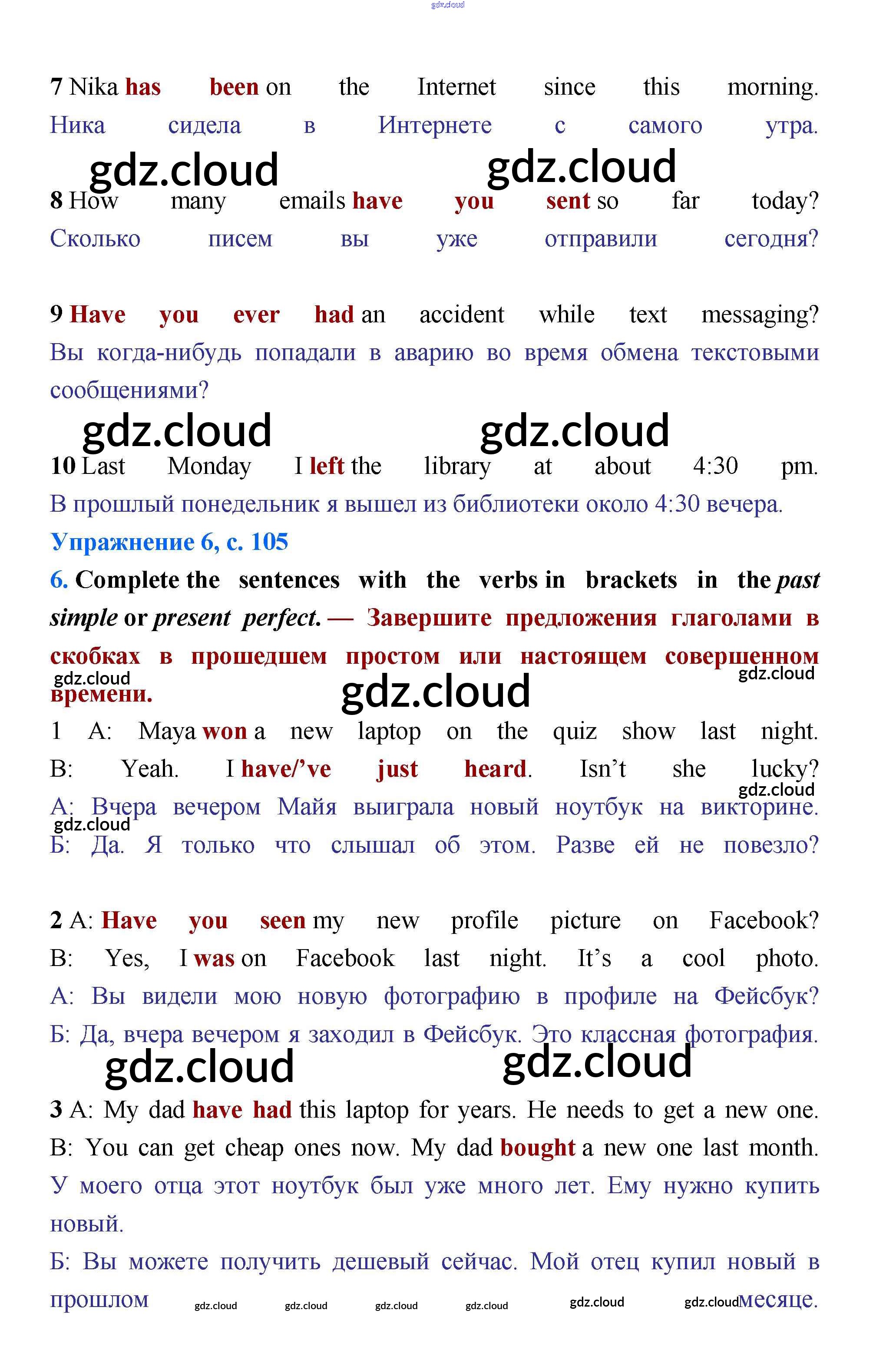Ответ на задание стр.105 Учебник Английский язык за 5 (пятый) класс Баранова, Эванс, Дули, Копылова, Мильруд Starlight Углубленный уровень 2015