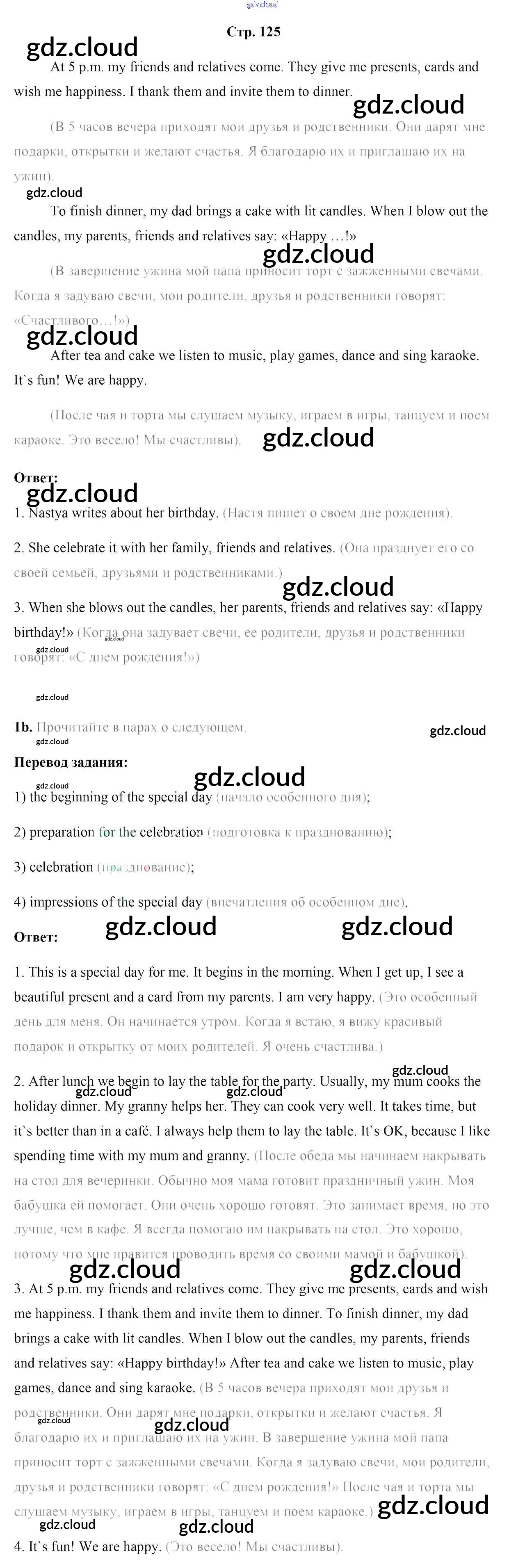 Ответ на задание стр.125 Учебник Английский язык за 5 (пятый) класс Лапицкая, Калишевич, Севрюкова, Седунова 2020 Часть 1, 2