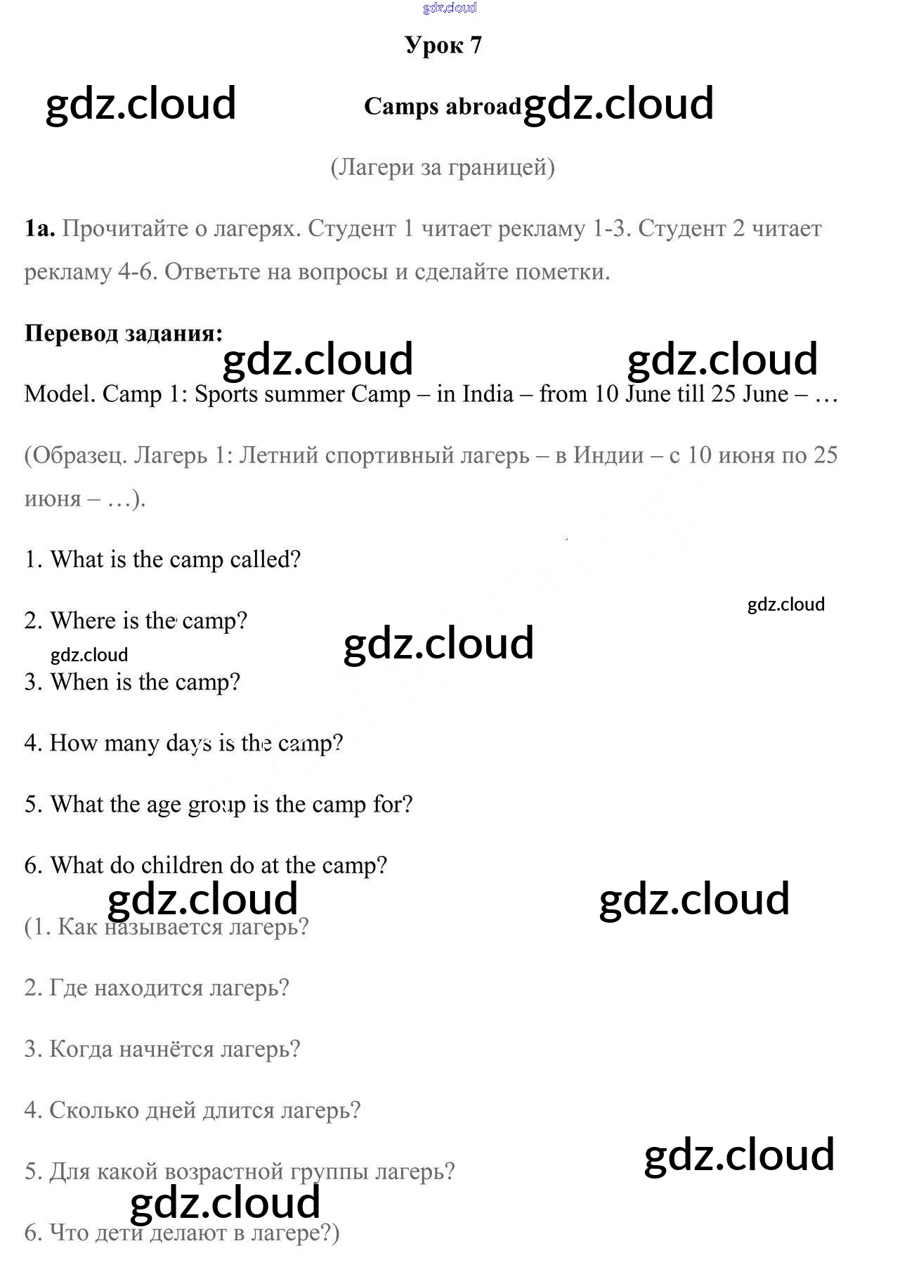 Ответы к части 1 по Английскому языку 5 класс Учебник Лапицкая Часть 1, 2 Народная асвета