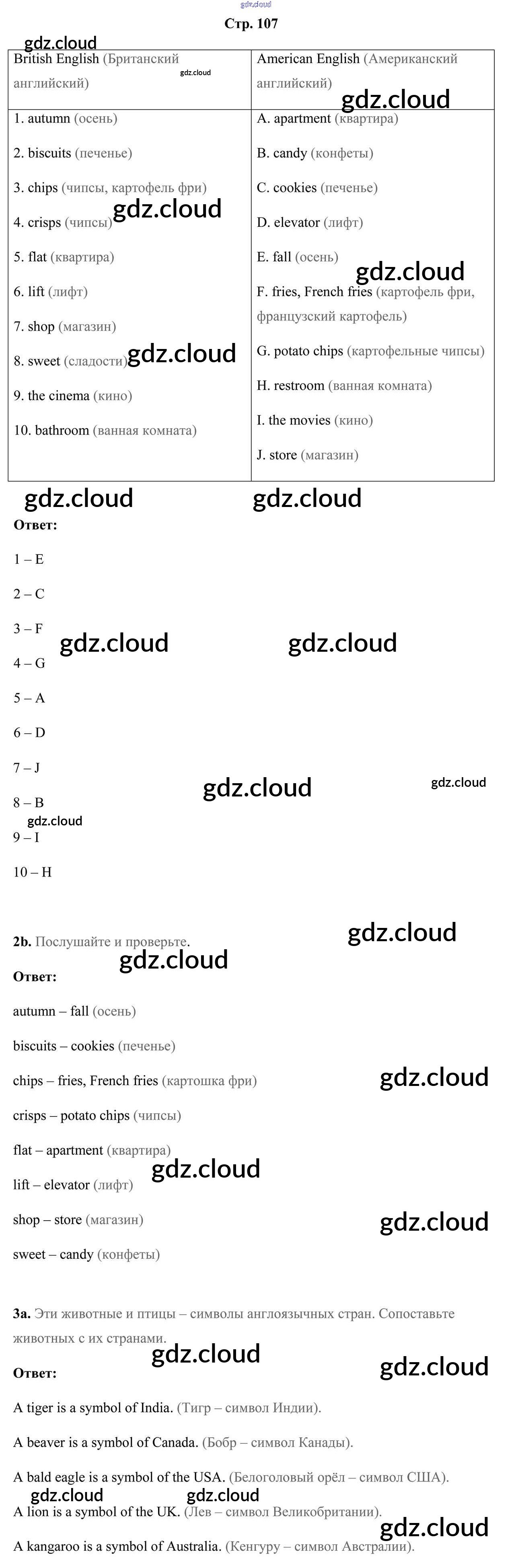 Ответ на задание стр.107 Учебник Английский язык за 5 (пятый) класс Лапицкая, Калишевич, Севрюкова, Седунова 2020 Часть 1, 2