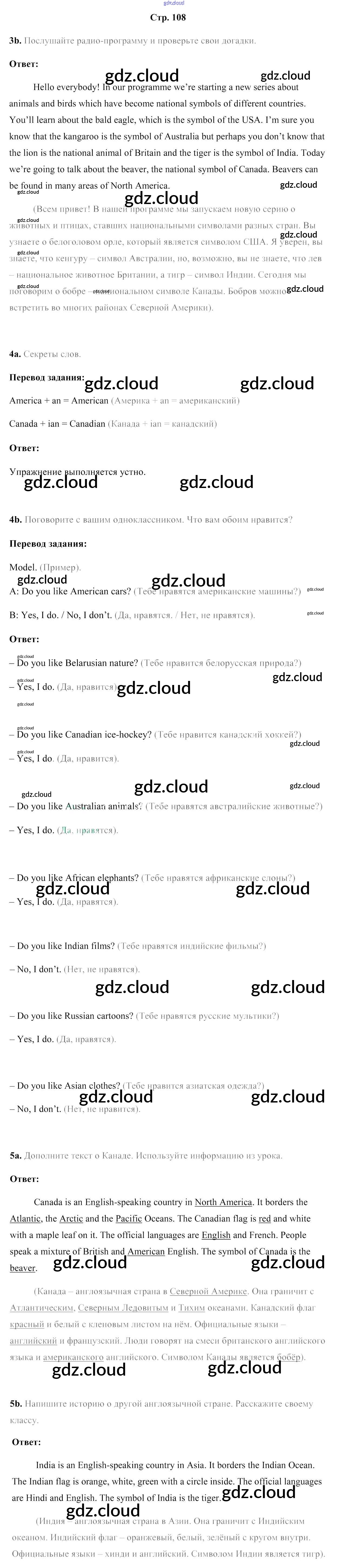 Ответ на задание стр.108 Учебник Английский язык за 5 (пятый) класс Лапицкая, Калишевич, Севрюкова, Седунова 2020 Часть 1, 2