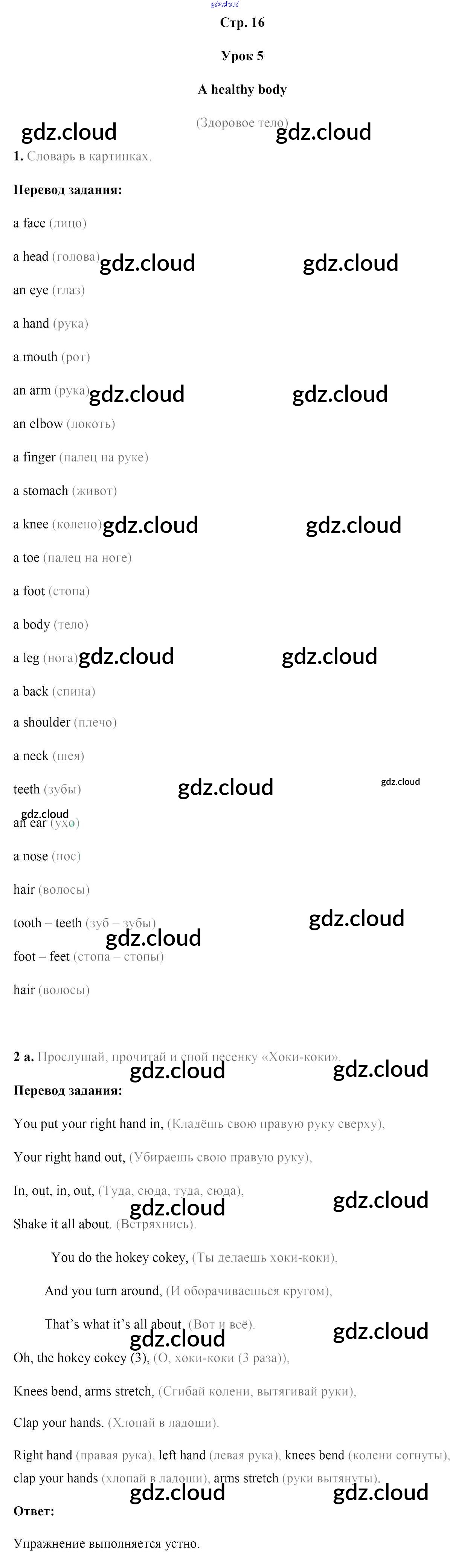 Ответ на задание стр.16 Учебник Английский язык за 5 (пятый) класс Лапицкая, Калишевич, Севрюкова, Седунова 2020 Часть 1, 2