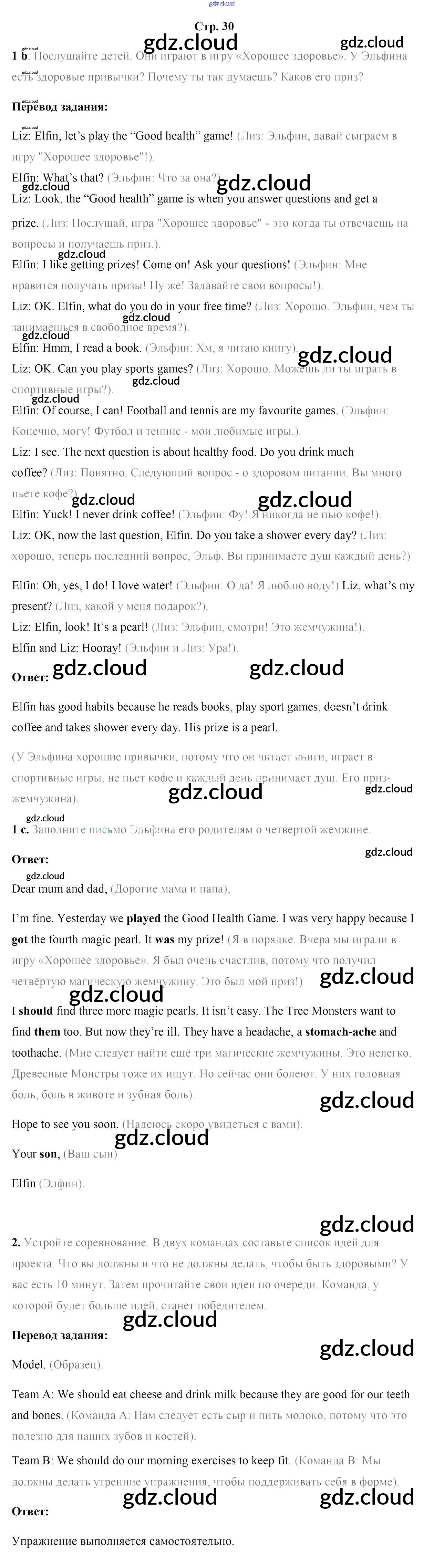 Ответ на задание стр.30 Учебник Английский язык за 5 (пятый) класс Лапицкая, Калишевич, Севрюкова, Седунова 2020 Часть 1, 2