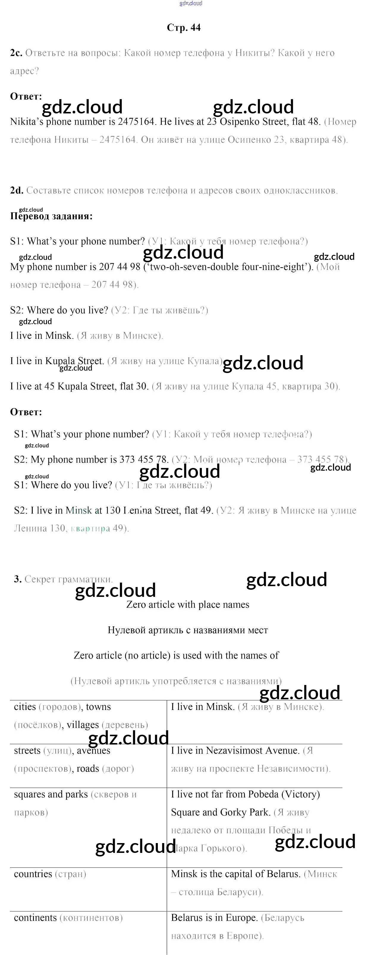 Ответ на задание стр.44 Учебник Английский язык за 5 (пятый) класс Лапицкая, Калишевич, Севрюкова, Седунова 2020 Часть 1, 2