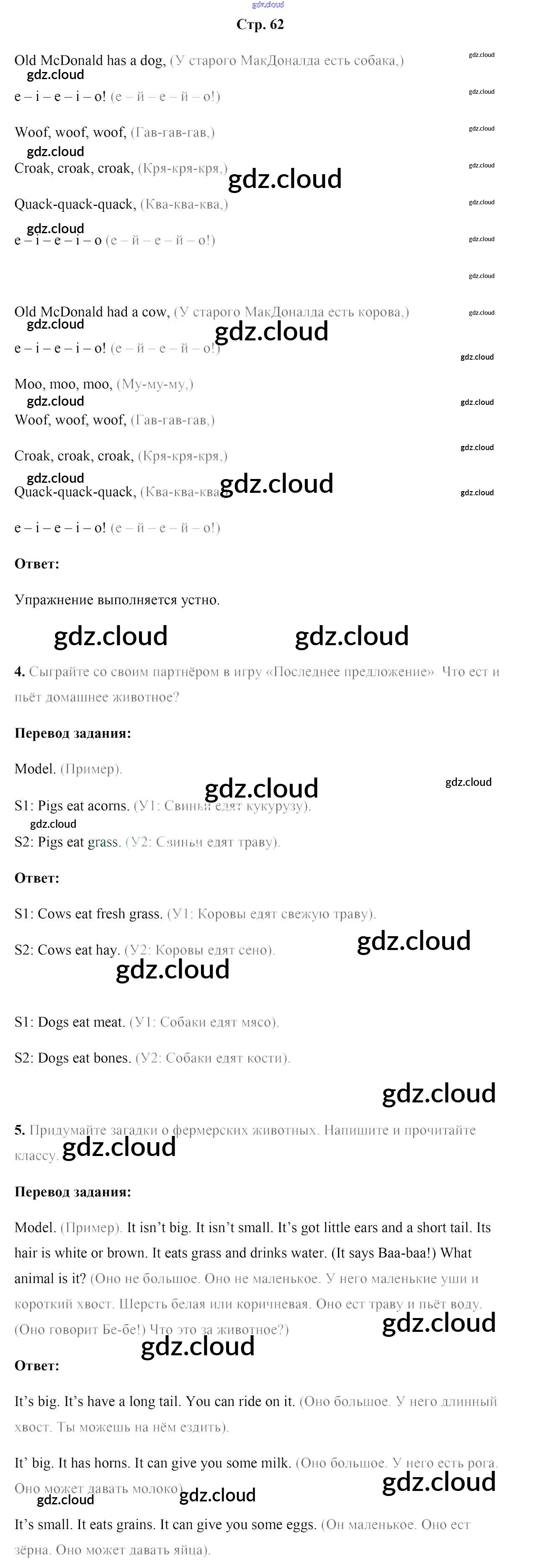 Ответ на задание стр.62 Учебник Английский язык за 5 (пятый) класс Лапицкая, Калишевич, Севрюкова, Седунова 2020 Часть 1, 2