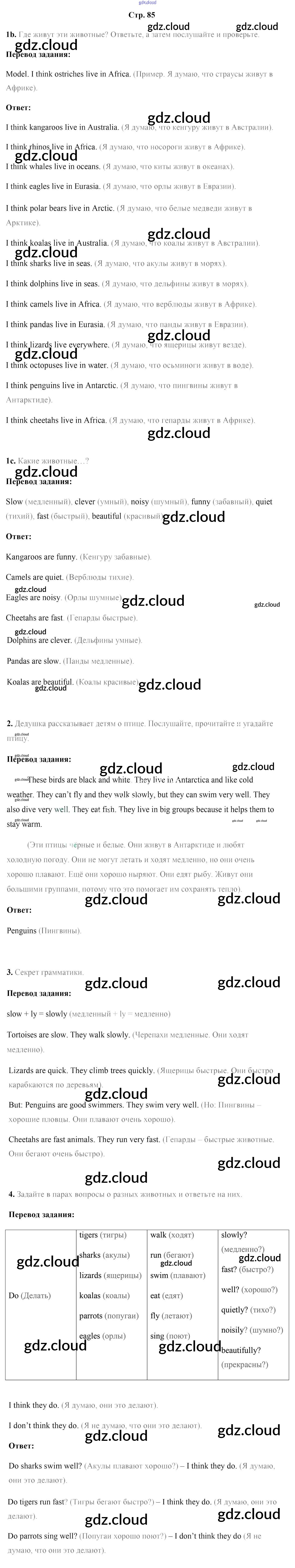 Ответ на задание стр.85 Учебник Английский язык за 5 (пятый) класс Лапицкая, Калишевич, Севрюкова, Седунова 2020 Часть 1, 2