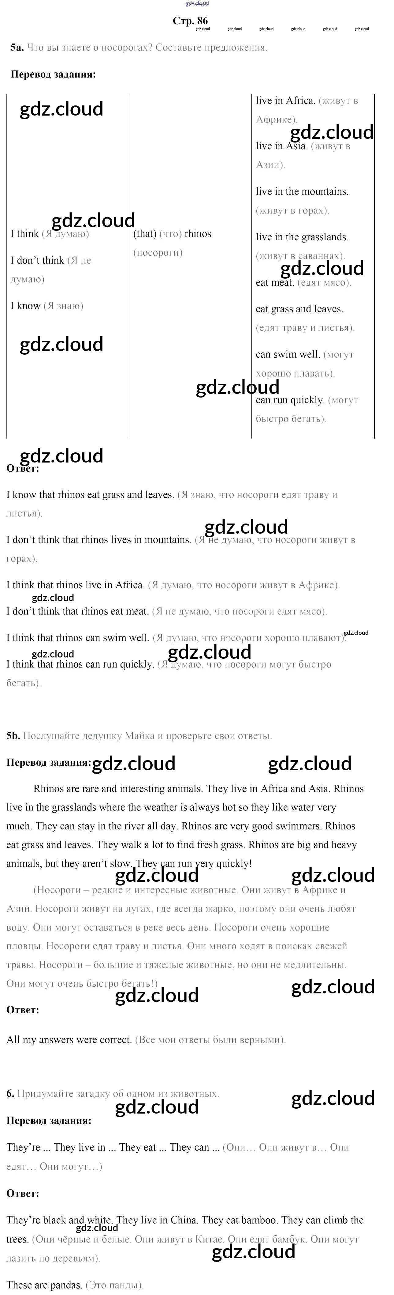 Ответ на задание стр.86 Учебник Английский язык за 5 (пятый) класс Лапицкая, Калишевич, Севрюкова, Седунова 2020 Часть 1, 2