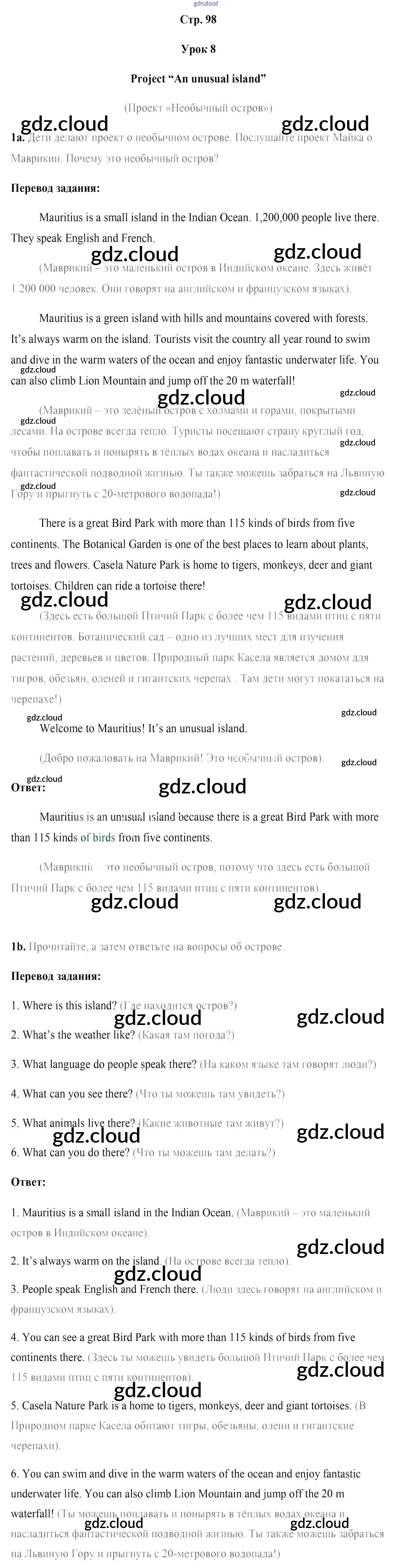 Ответ на задание стр.98 Учебник Английский язык за 5 (пятый) класс Лапицкая, Калишевич, Севрюкова, Седунова 2020 Часть 1, 2