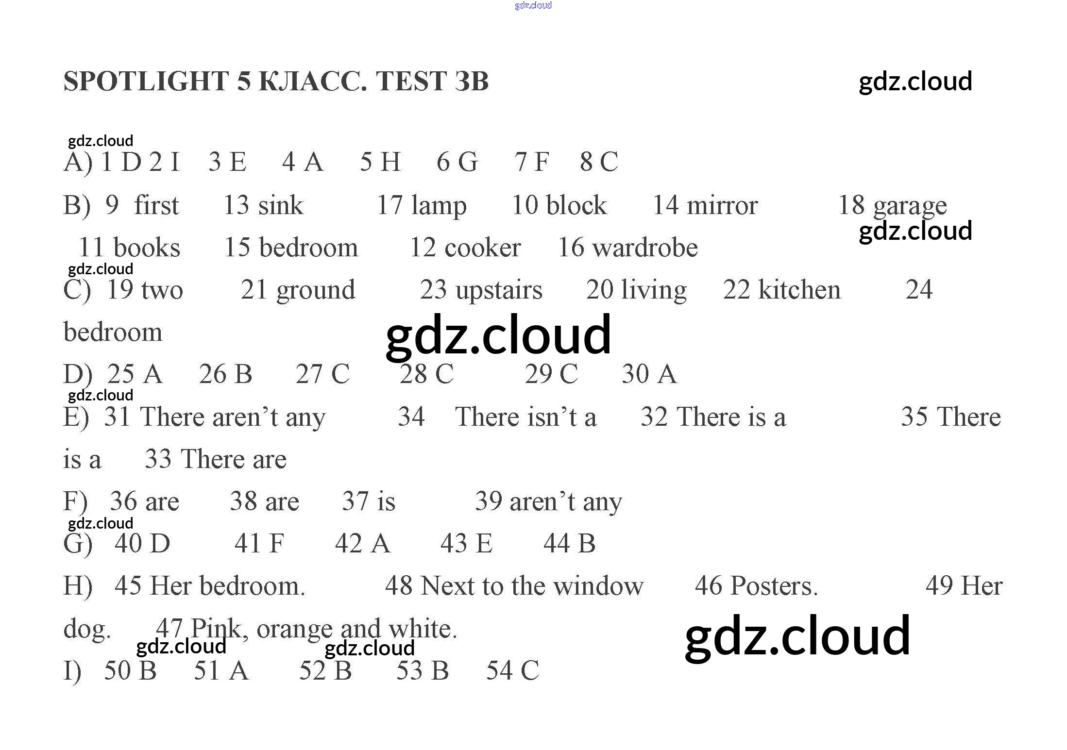 Ответы к Тесту 3 по Английскому языку 5 класс Контрольные задания Ваулина Spotlight Просвещение