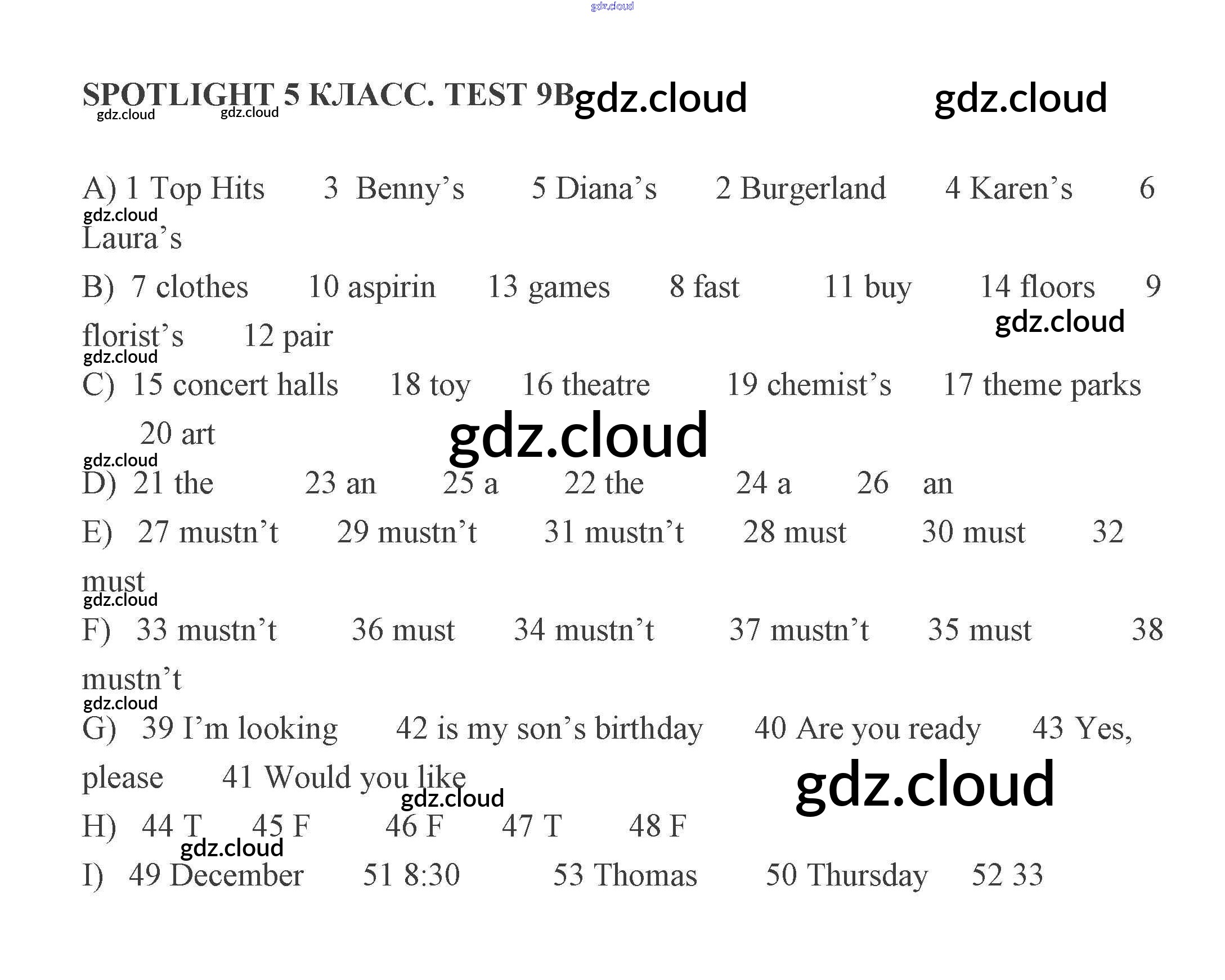 Ответы к Тесту 9 по Английскому языку 5 класс Контрольные задания Ваулина Spotlight Просвещение